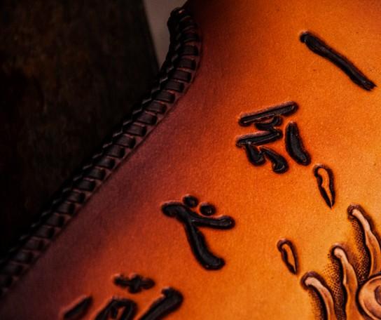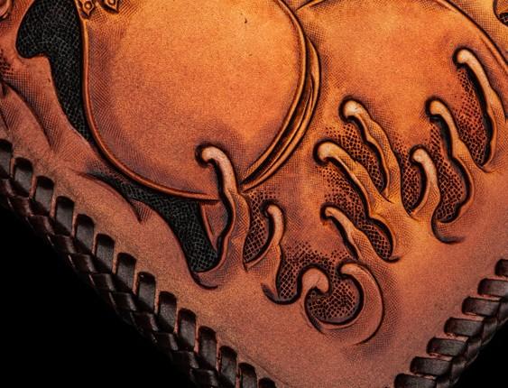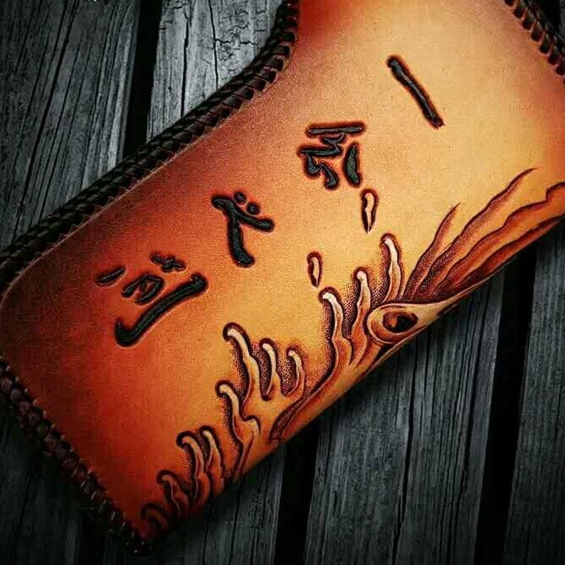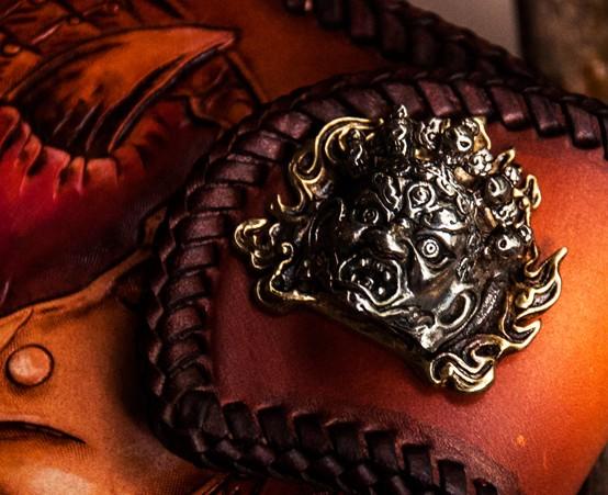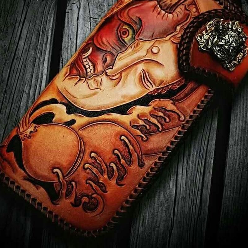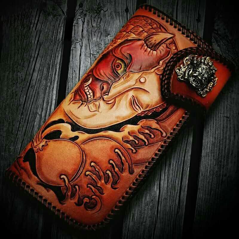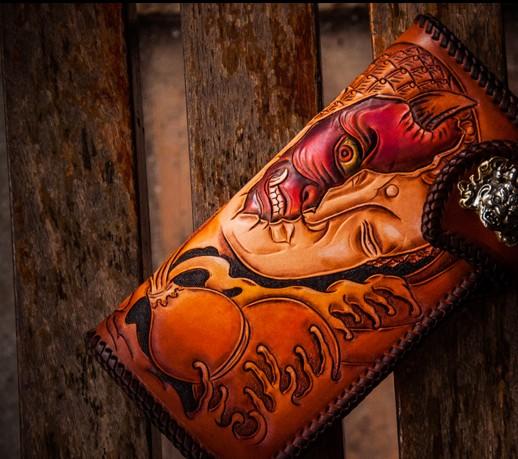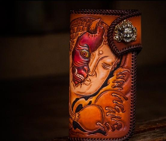 Design: Handmade Leather Tooled Buddha&Demon Mens Chain Biker Wallet Cool Leather Wallet With Chain Wallets for Men
