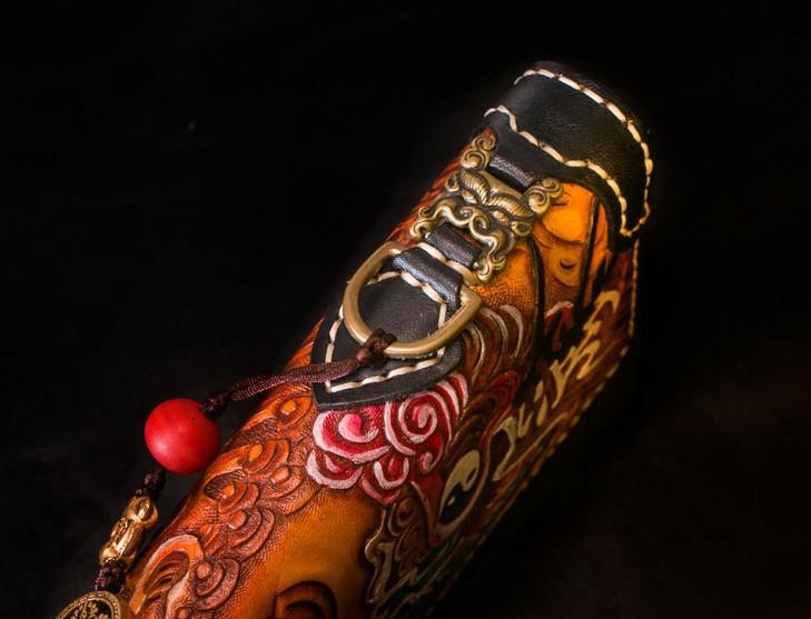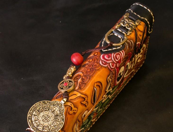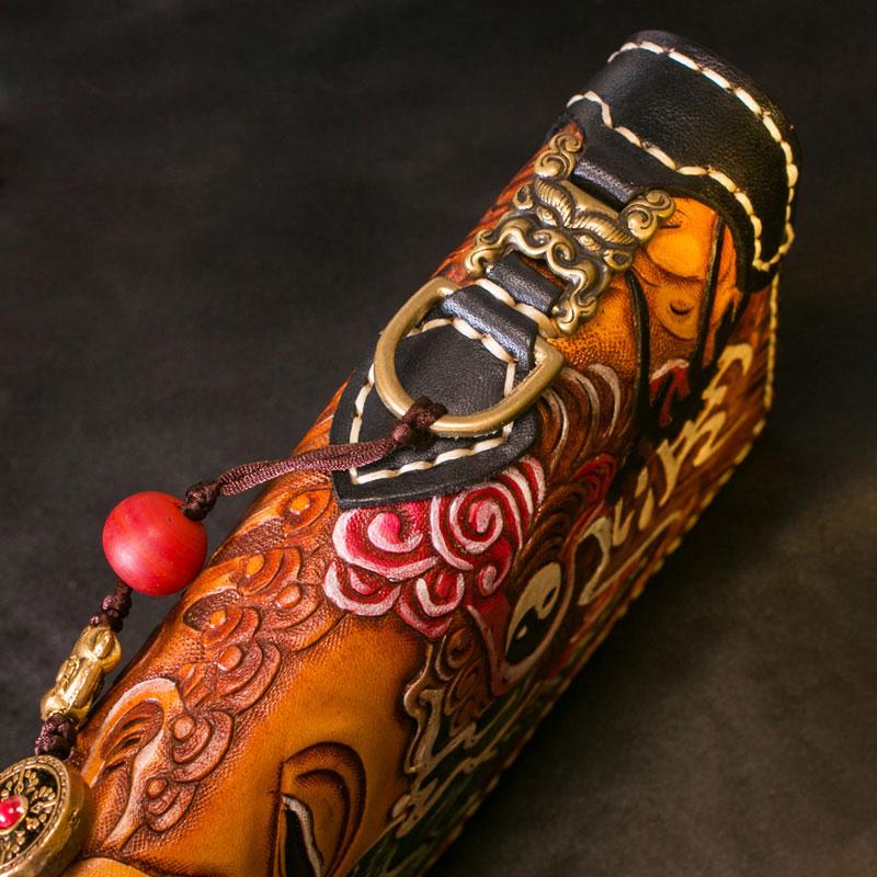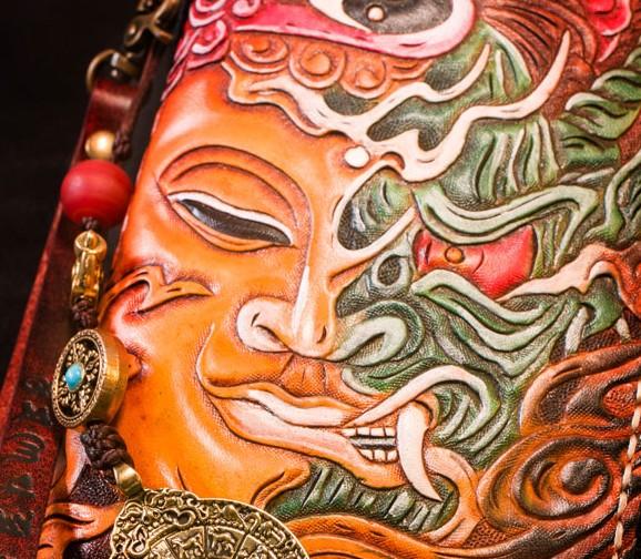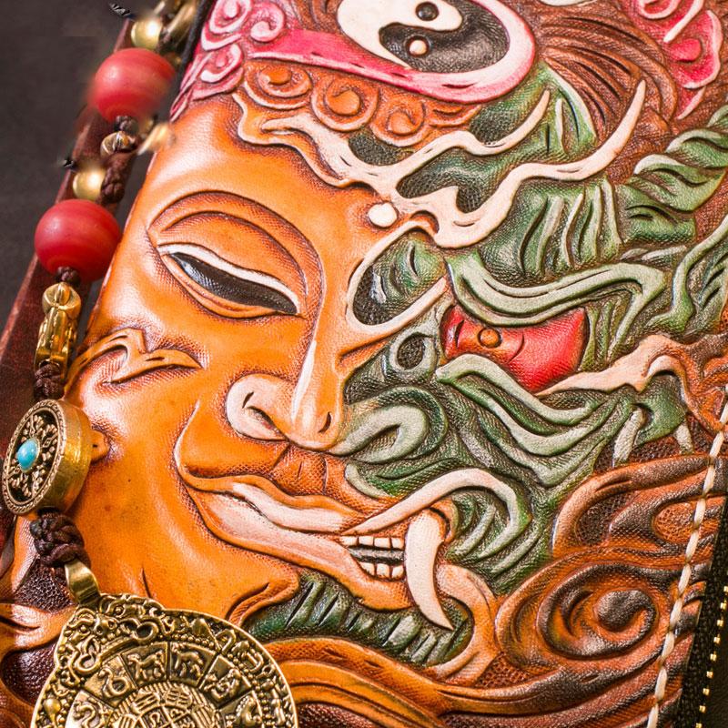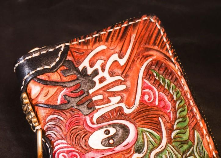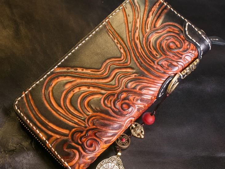 Design: Handmade Leather Tooled Buddha Mens Chain Biker Wallet Cool Leather Wallet Long Phone Wallets for Men