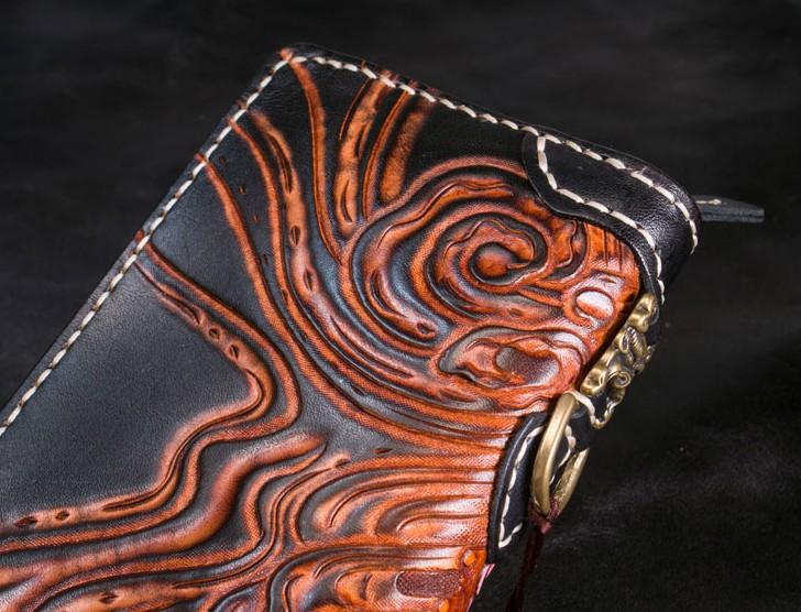 Style: Handmade Leather Tooled Buddha Mens Chain Biker Wallet Cool Leather Wallet Long Phone Wallets for Men