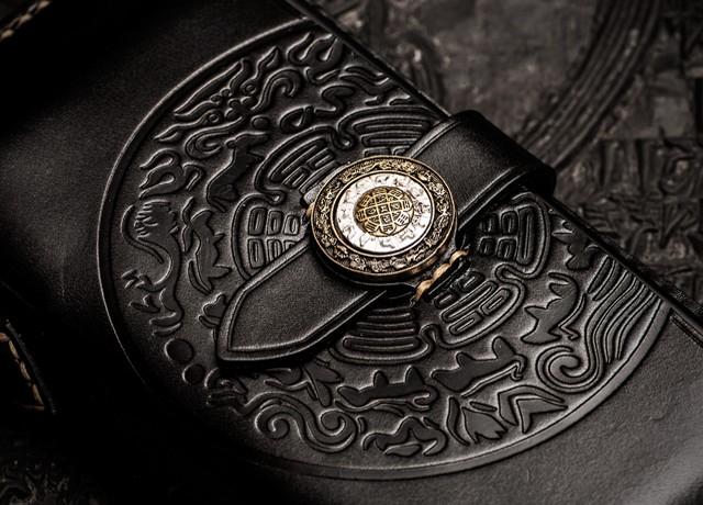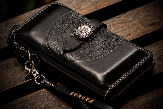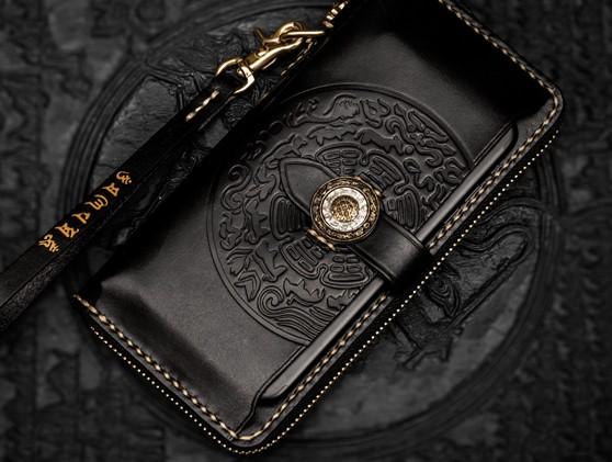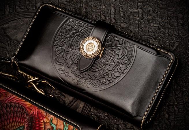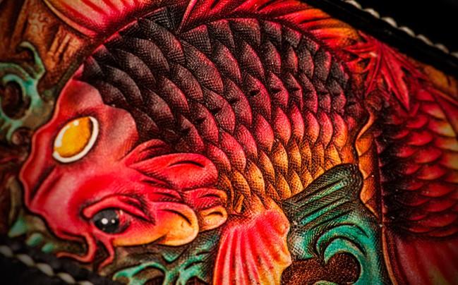 Style: Handmade Leather Tooled Carp Chain Wallet Mens Biker Wallet Cool Leather Wallet Long Phone Wallets for Men