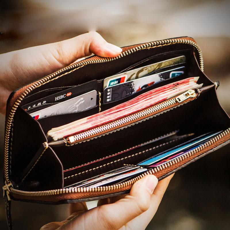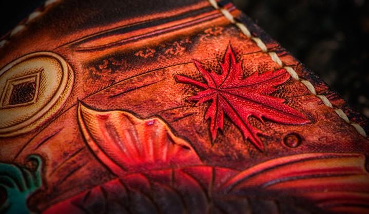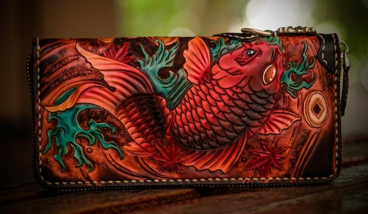 Style: Handmade Leather Tooled Carp Mens Chain Biker Wallet Cool Leather Wallet Long Phone Wallets for Men and it should last a life time