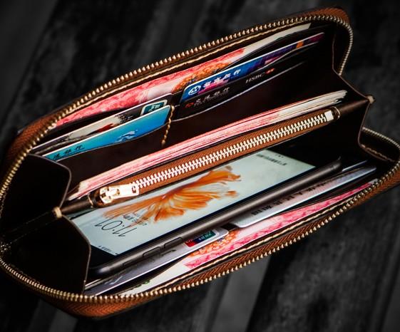 Slots: 2 full size bill slot, 8 card holders, 1 zipper slot, 2 phone slot