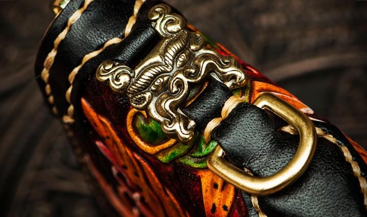 Style: Handmade Leather Tooled Carp Mens Chain Biker Wallet Cool Leather Wallet Long Phone Wallets for Men and it should last a life time