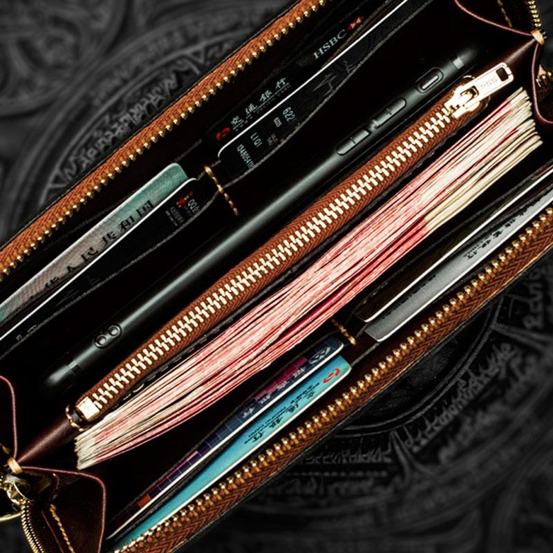 Slots: 2 full size bill slot, 8 card holders, 1 zipper slot, 2 phone slot