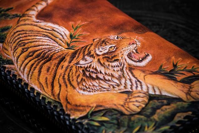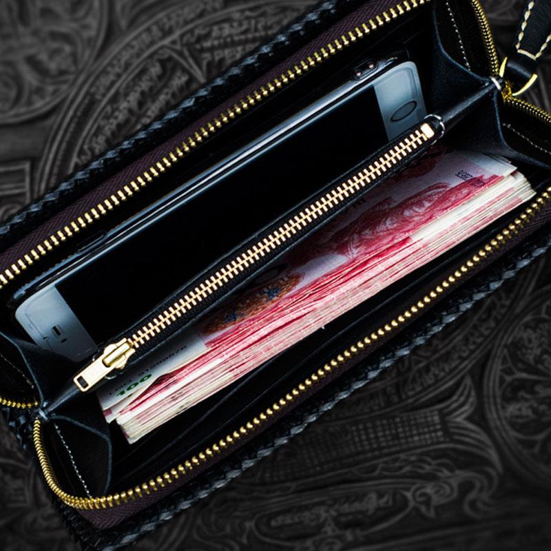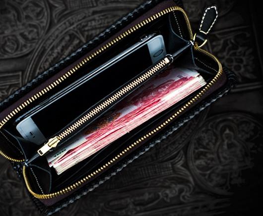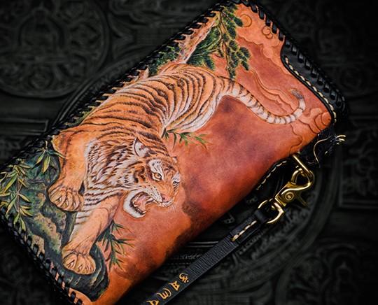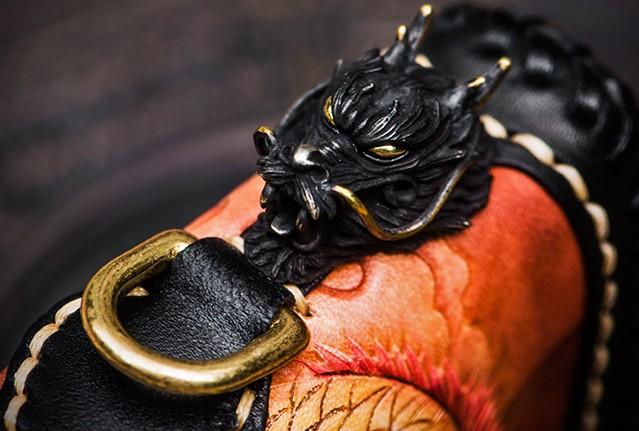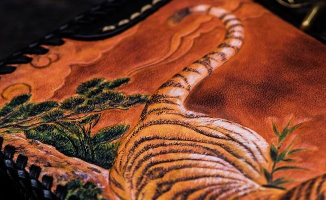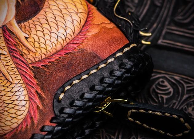 Style: Handmade Leather Tooled Chinese Dragon Chain Wallet Mens Biker Wallet Cool Leather Wallet Long Phone Wallets for Men