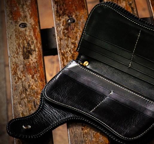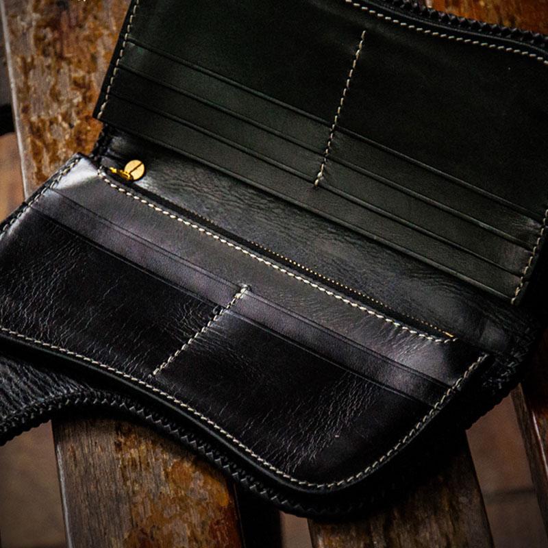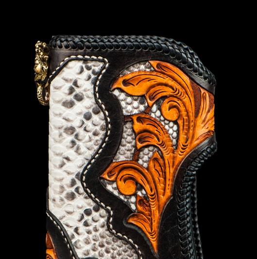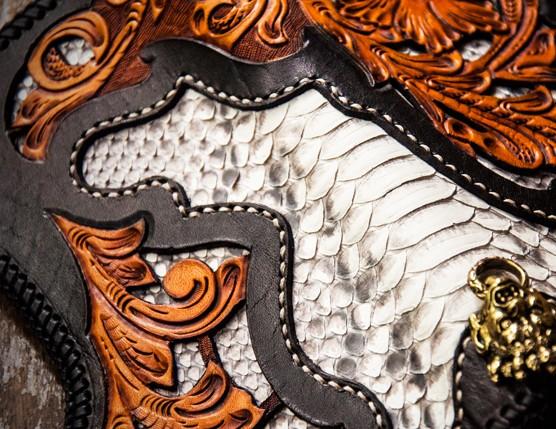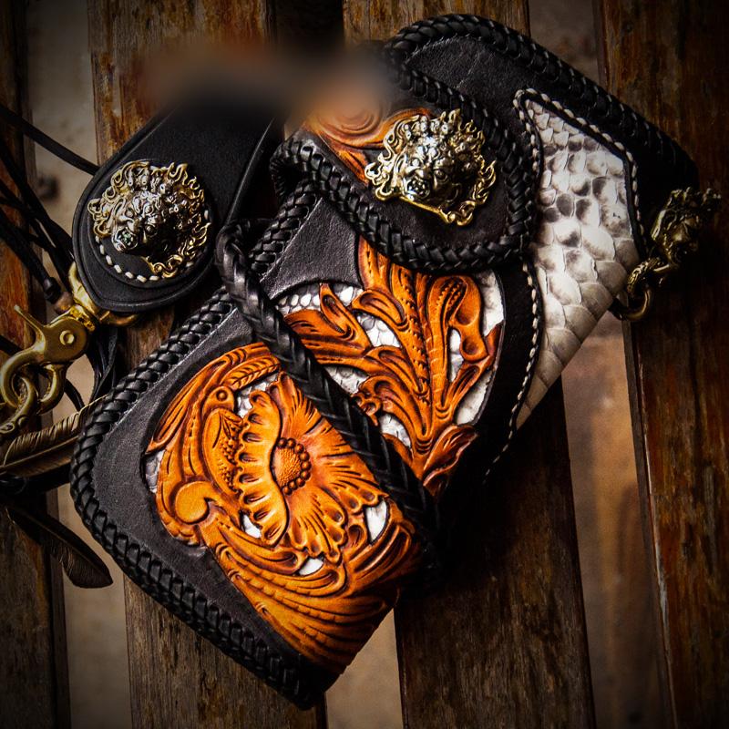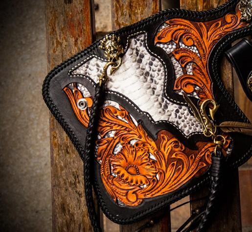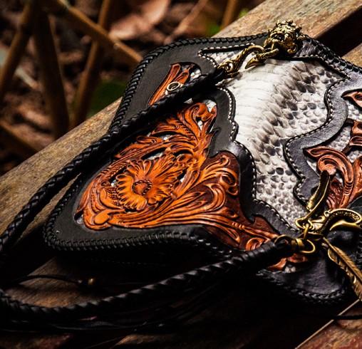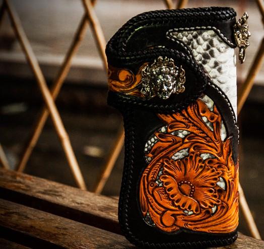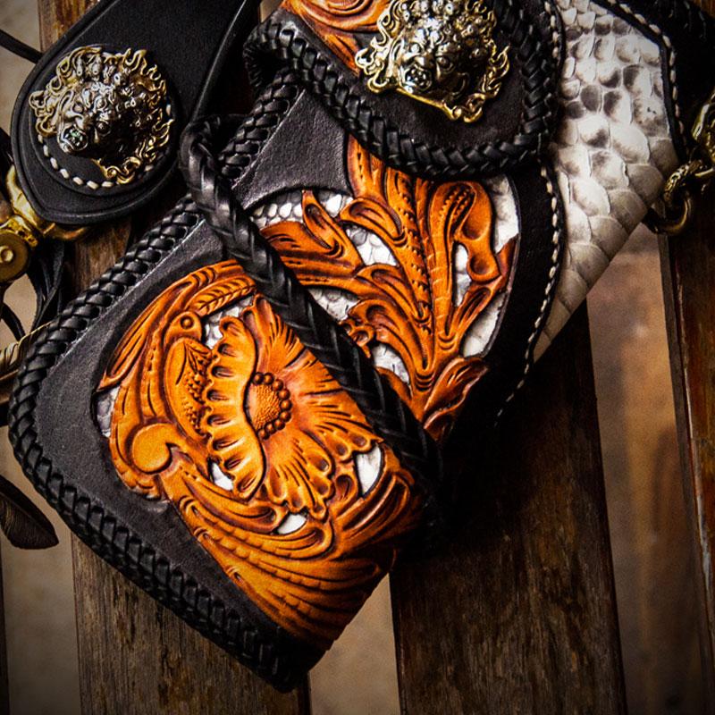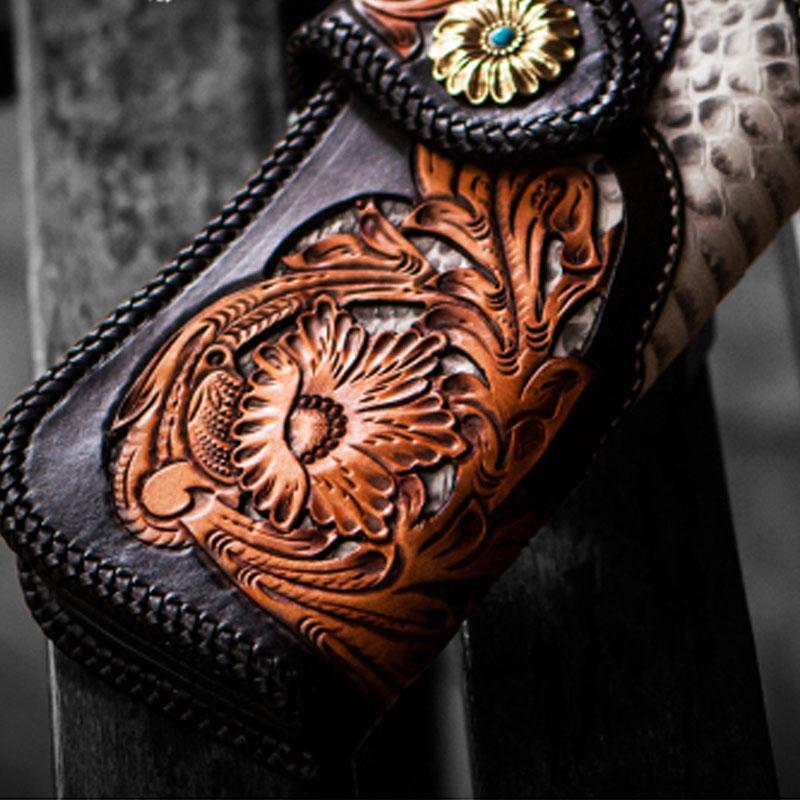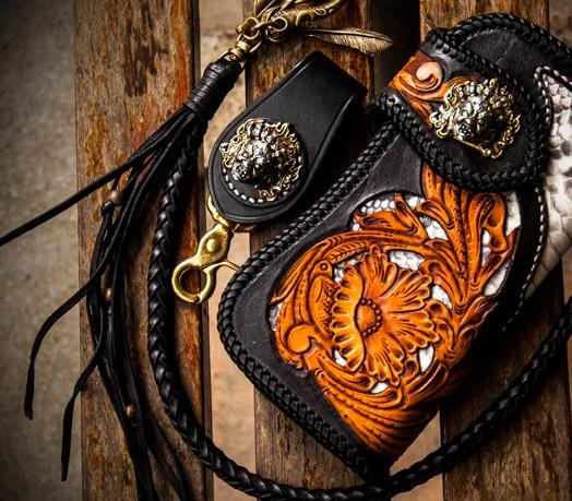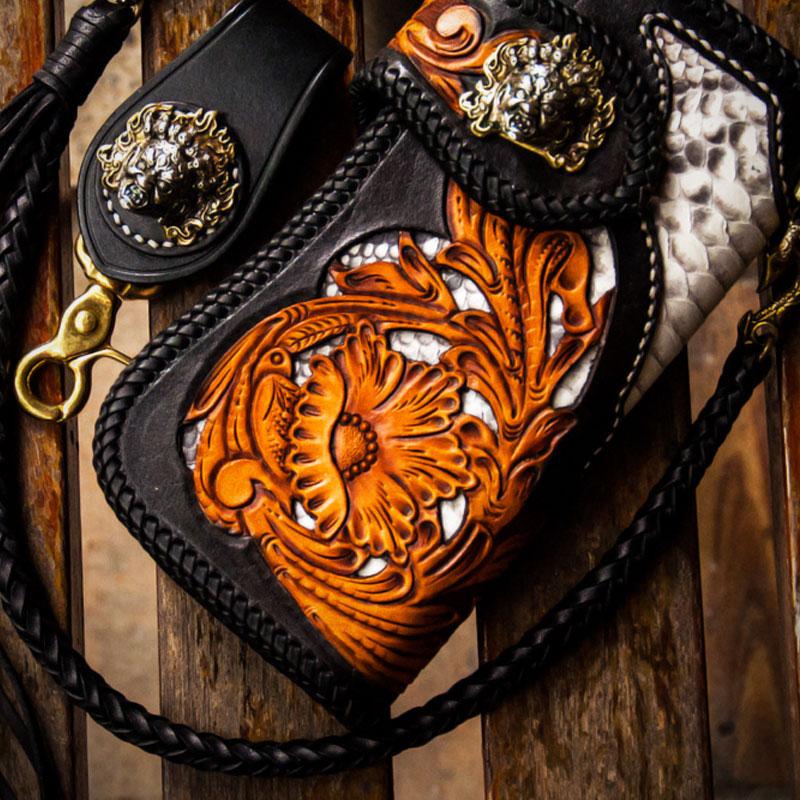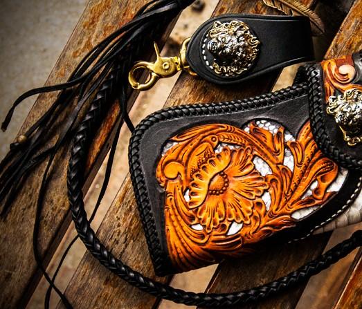 Style: Handmade Leather Tooled Floral Mens Chain Biker Wallet Cool Leather Wallet With Chain Wallets for Men