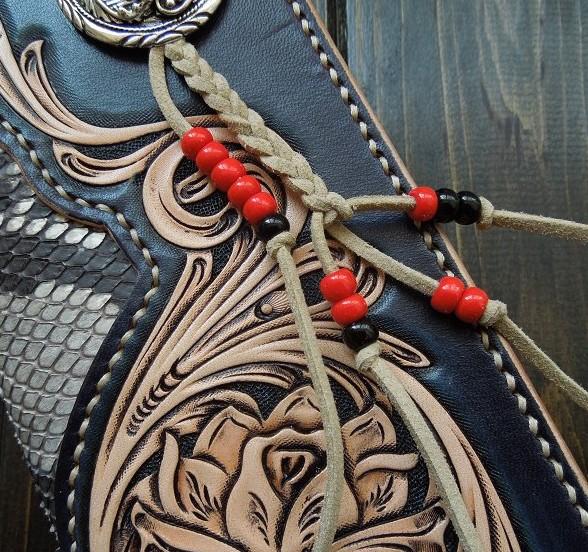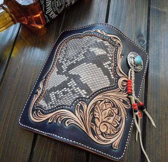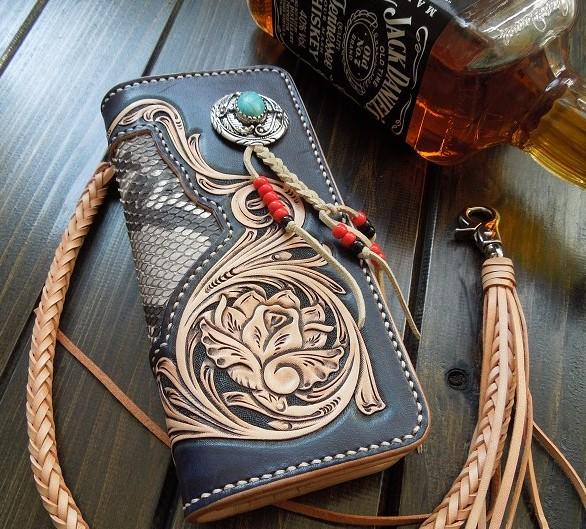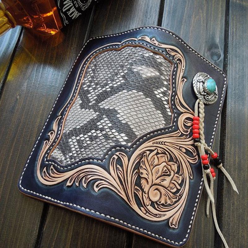 Design: Handmade Leather Tooled Floral Mens Clutch Wallet Cool Wallet Long Wallets for Men