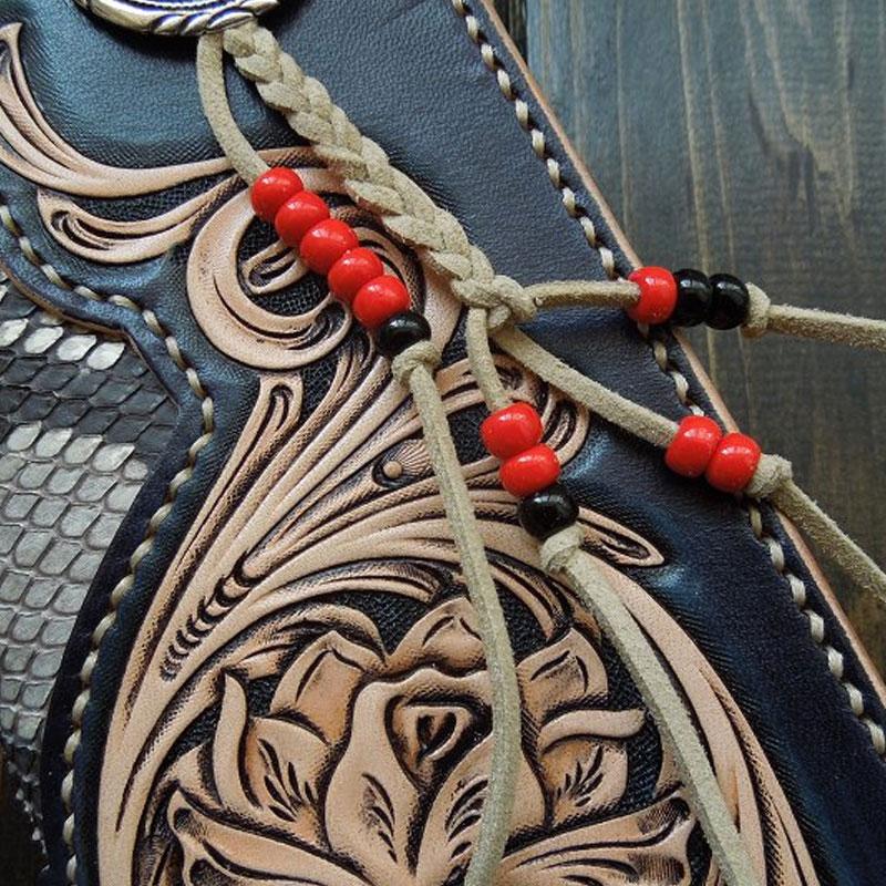 Style: Handmade Leather Tooled Floral Mens Clutch Wallet Cool Wallet Long Wallets for Men