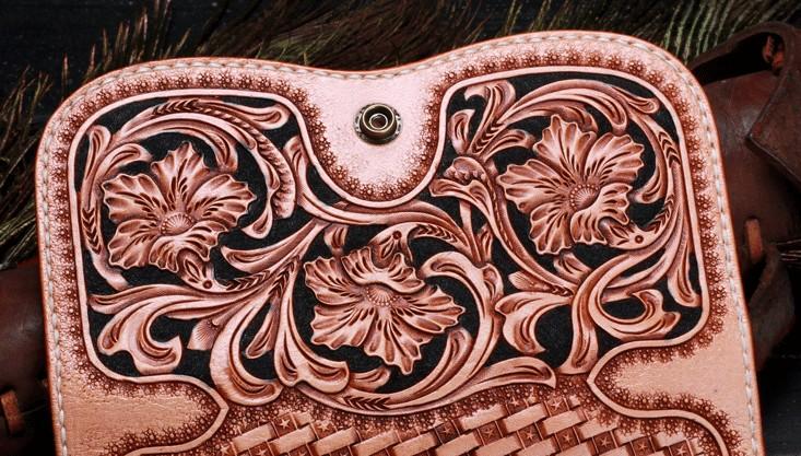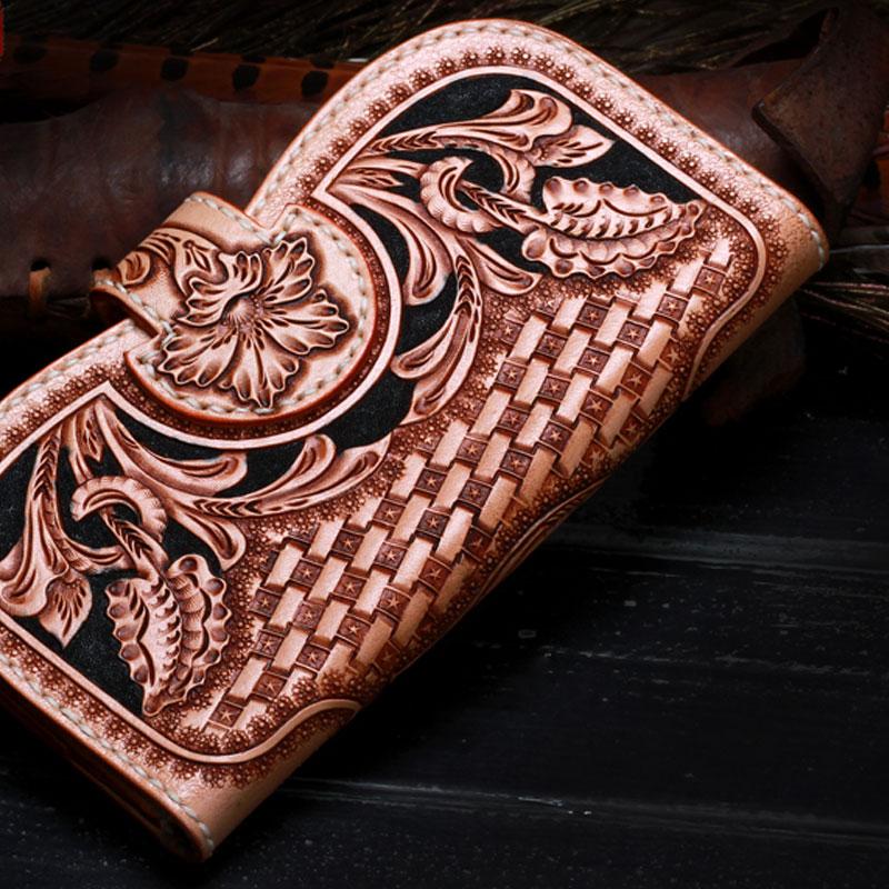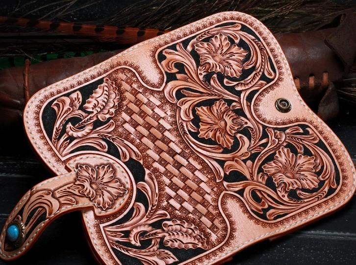Design: Handmade Leather Tooled Floral Mens Clutch Wallet Cool Wallet Long Wallets for Men Women