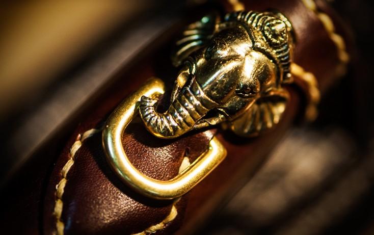 Style: Handmade Leather Tooled Ganesh Mens Chain Biker Wallet Cool Leather Wallet Zipper Long Phone Wallets for Men