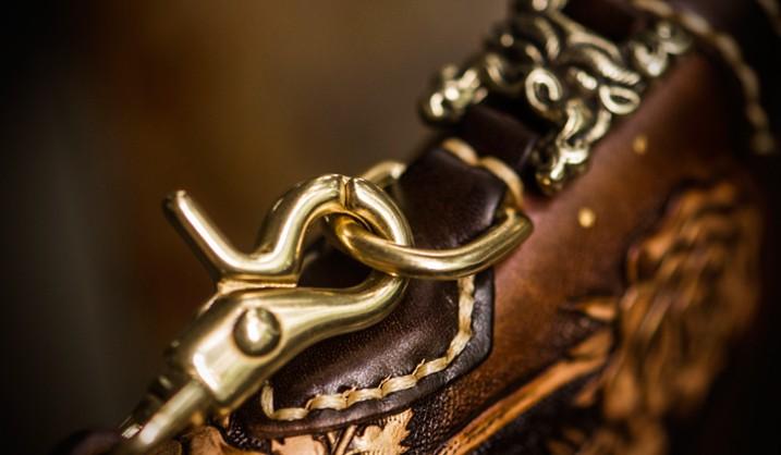 Style: Handmade Leather Tooled Horse Mens Chain Biker Wallet Cool Leather Wallet Long Phone Wallets for Men