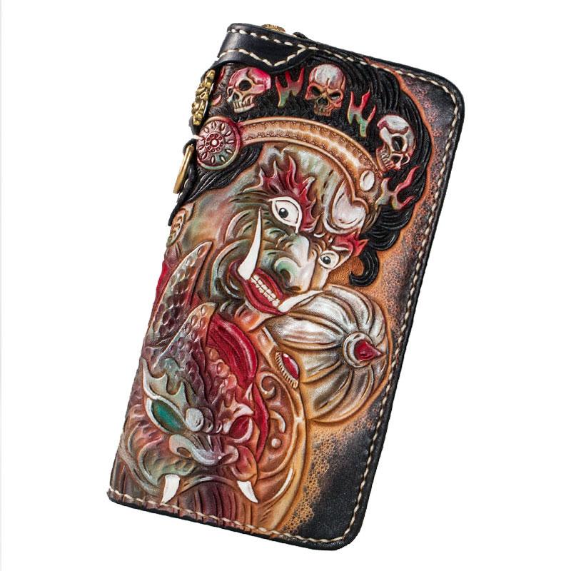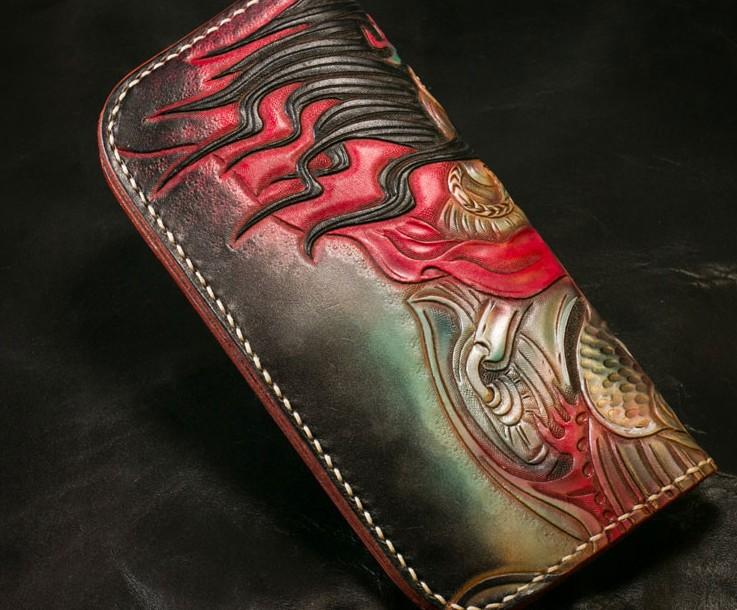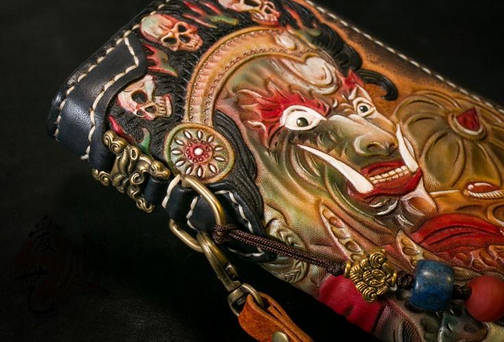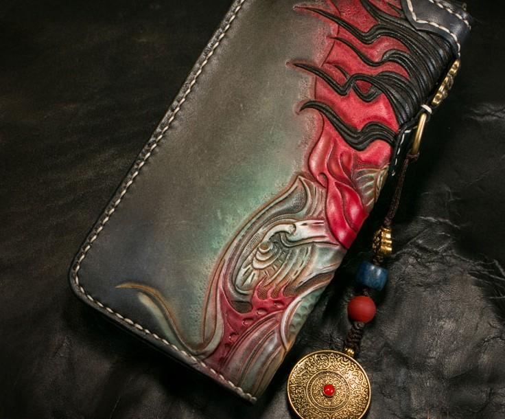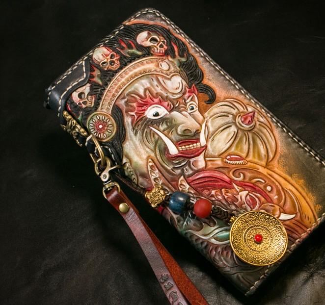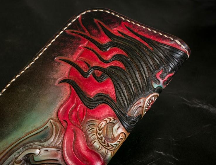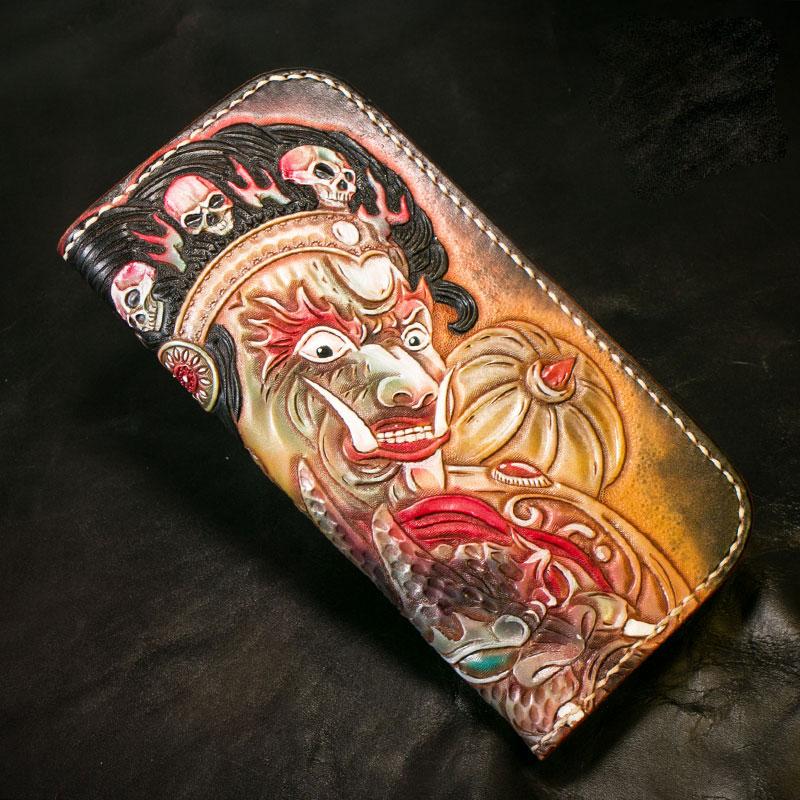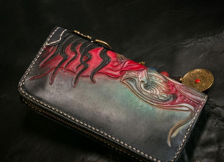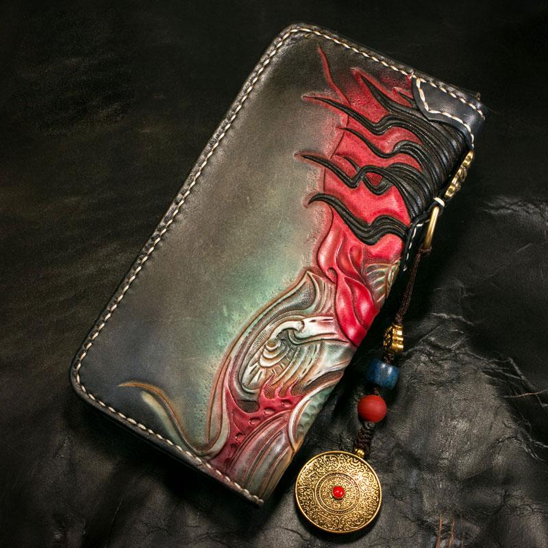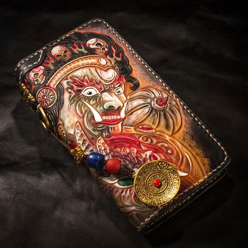 Design: Handmade Leather Tooled Mah¨¡k¨¡la Mens Chain Biker Wallet Cool Leather Wallet Long Clutch Wallets for Men