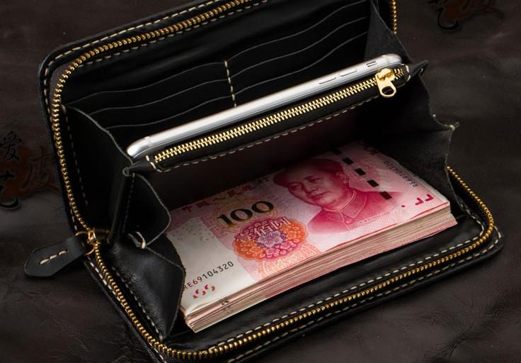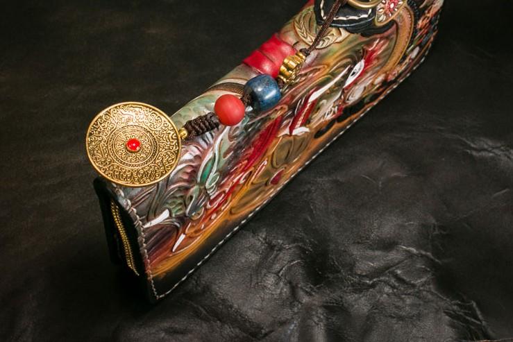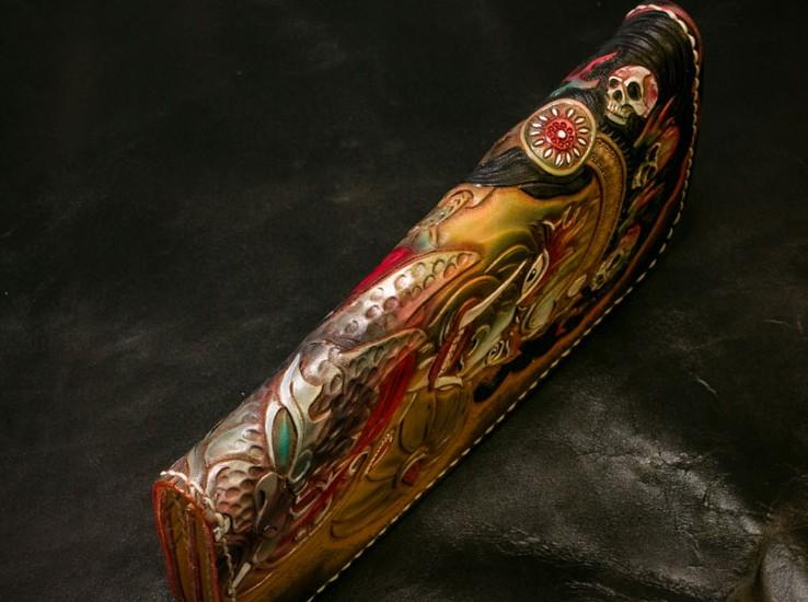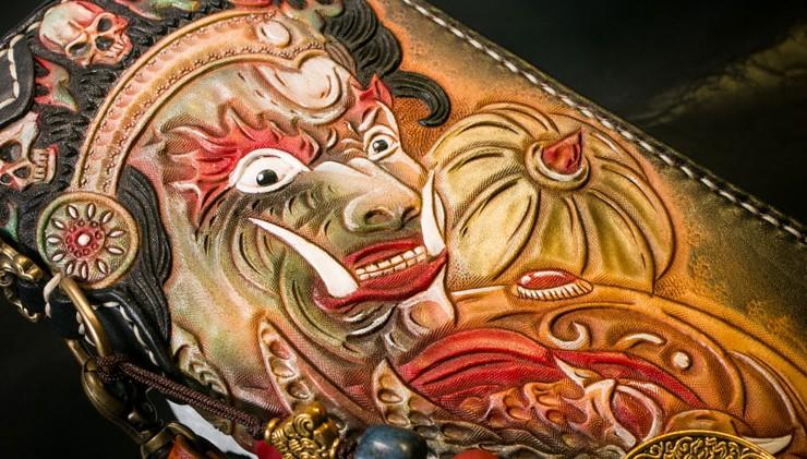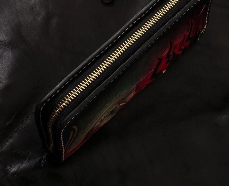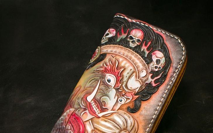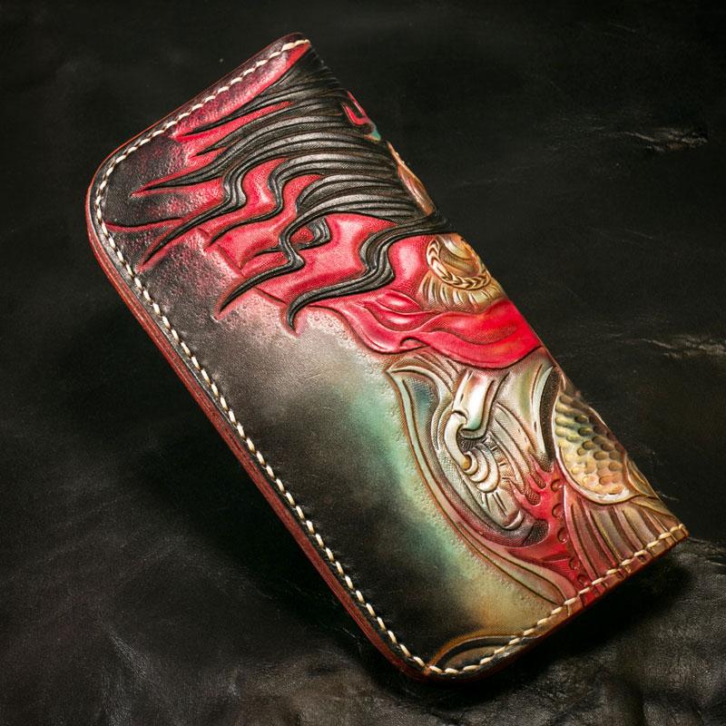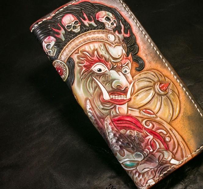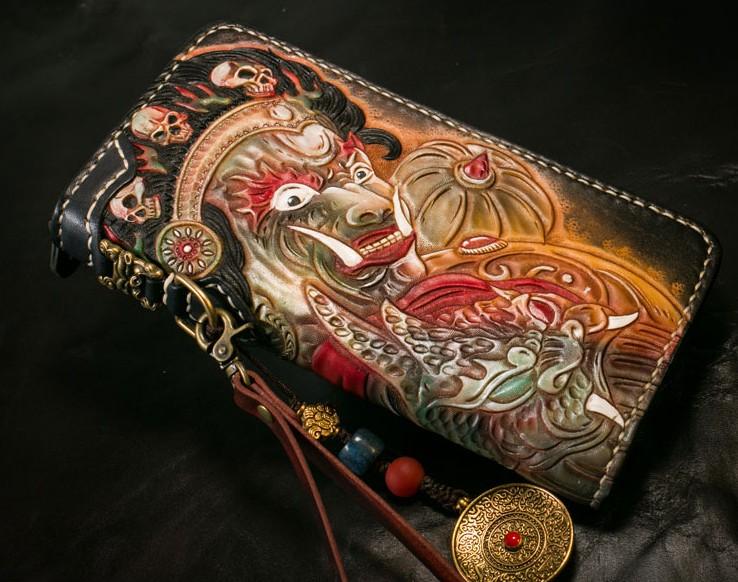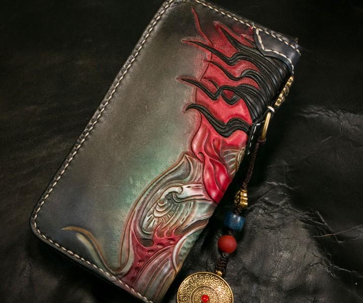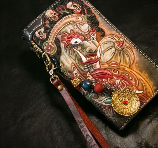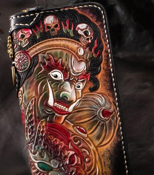 Design: Handmade Leather Tooled Mah¨¡k¨¡la Mens Chain Biker Wallet Cool Leather Wallet Long Clutch Wallets for Men