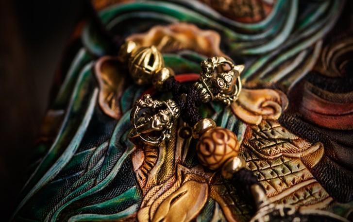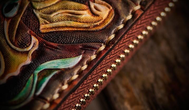 Style: Handmade Leather Tooled Monkey King Mens Chain Biker Wallet Cool Leather Wallet Long Clutch Wallets for Men