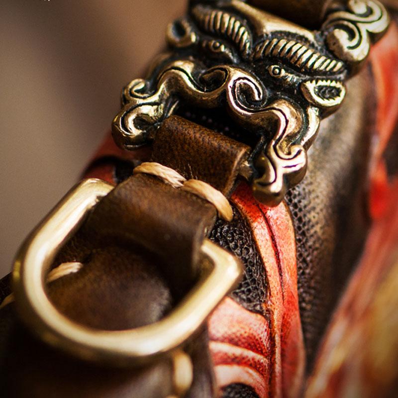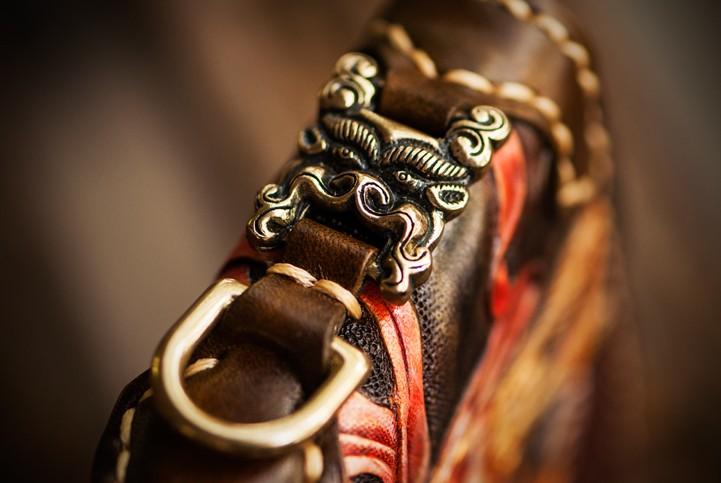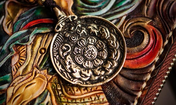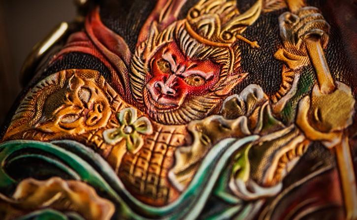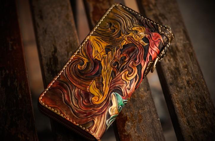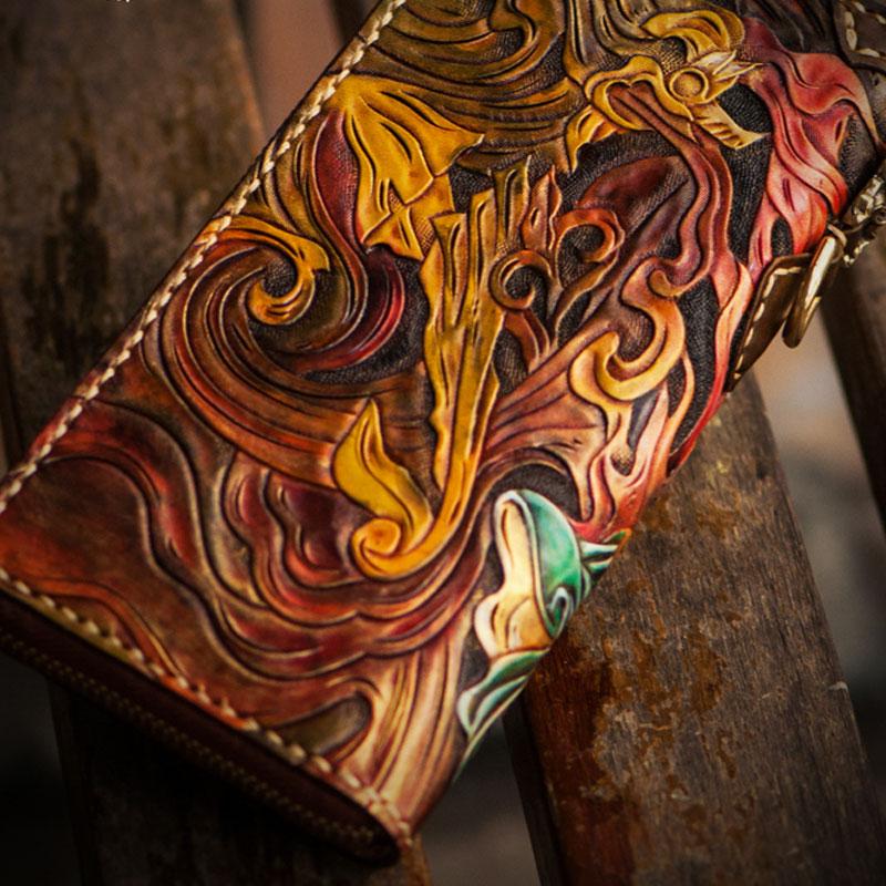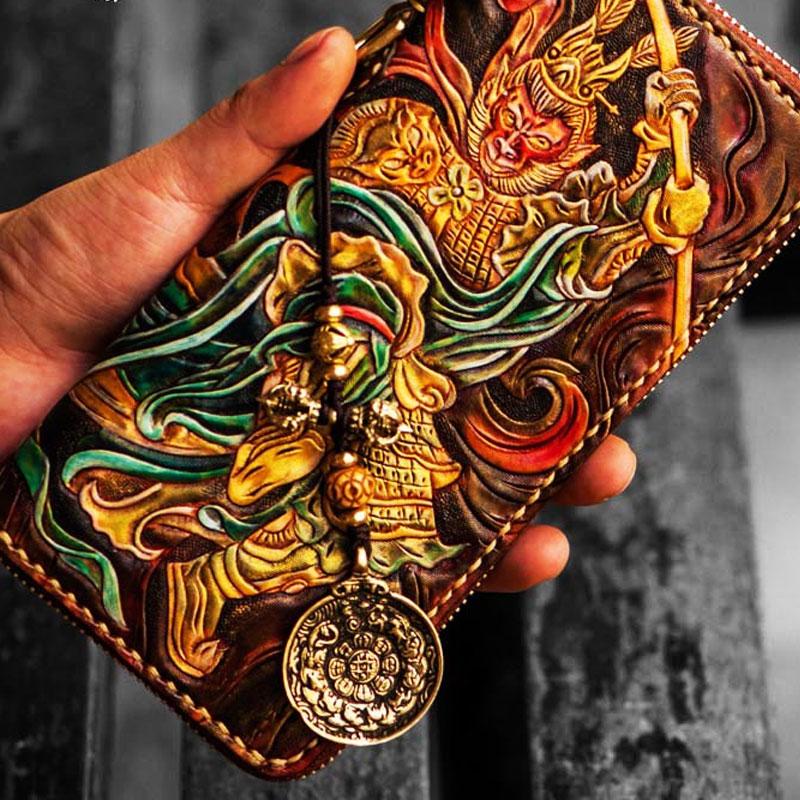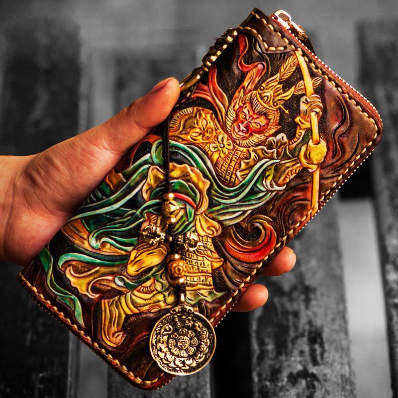Design: Handmade Leather Tooled Monkey King Mens Chain Biker Wallet Cool Leather Wallet Long Clutch Wallets for Men