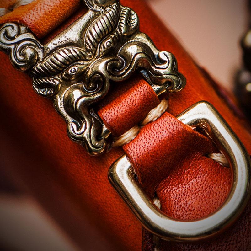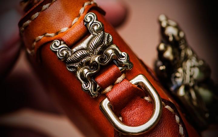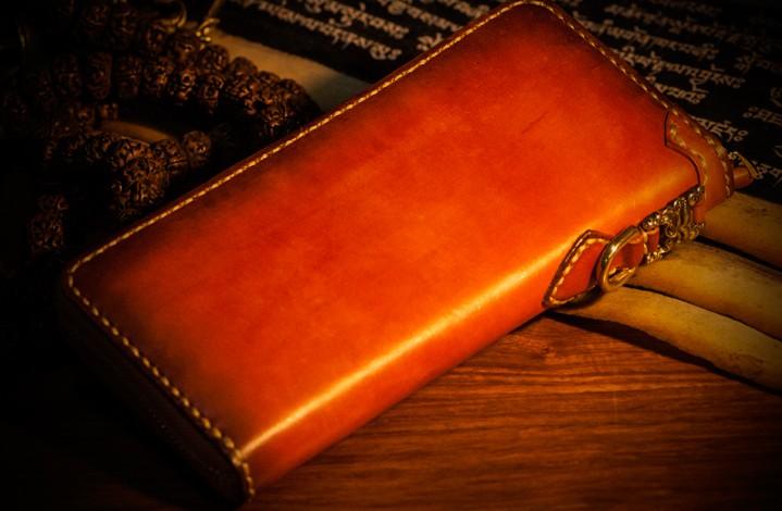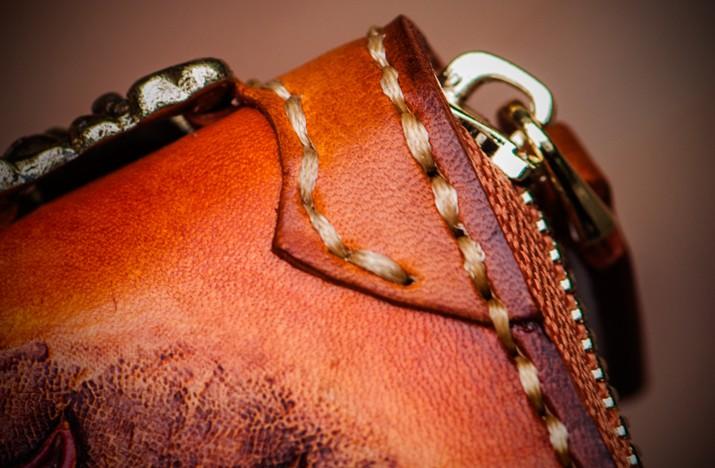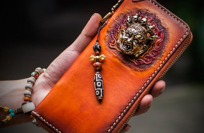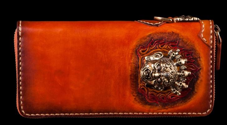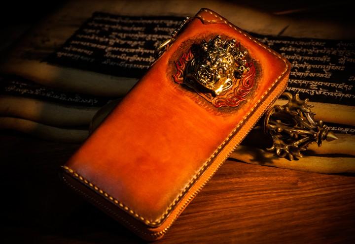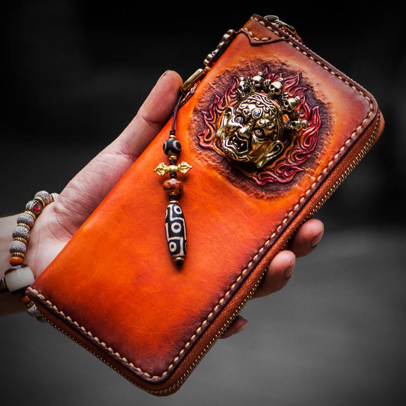 Design: Handmade Leather Tooled Tibetan Mens Chain Biker Wallet Cool Leather Wallet Long Clutch Wallets for Men