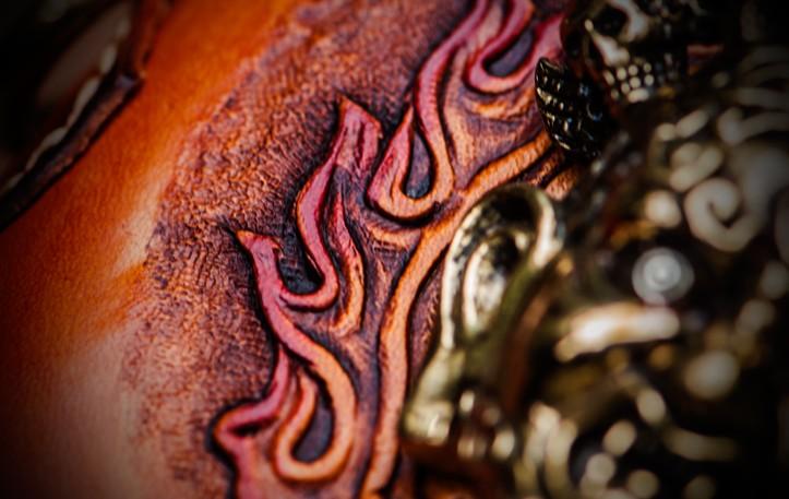 Style: Handmade Leather Tooled Tibetan Mens Chain Biker Wallet Cool Leather Wallet Long Clutch Wallets for Men