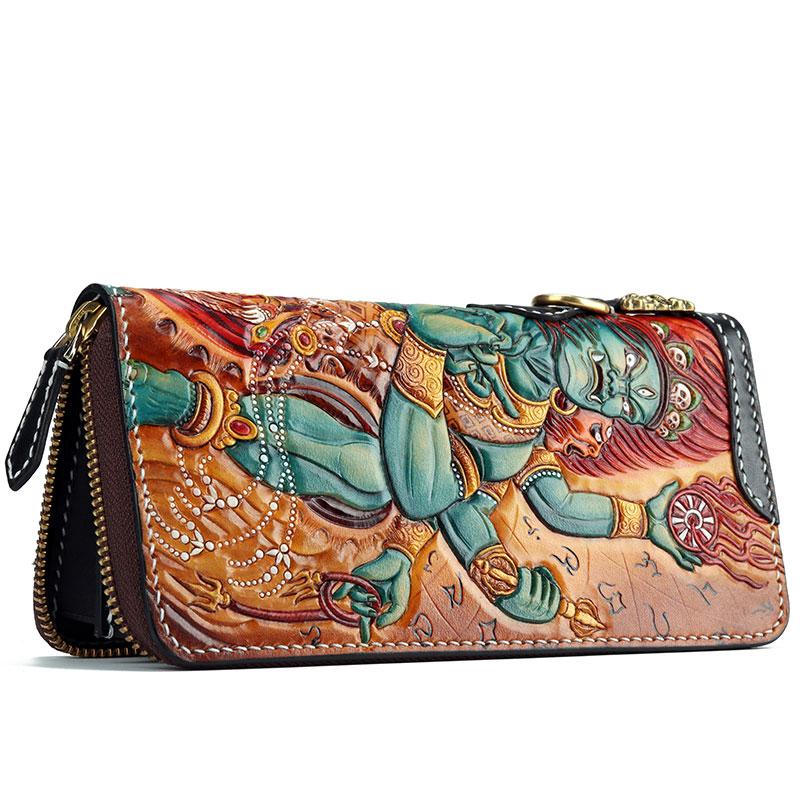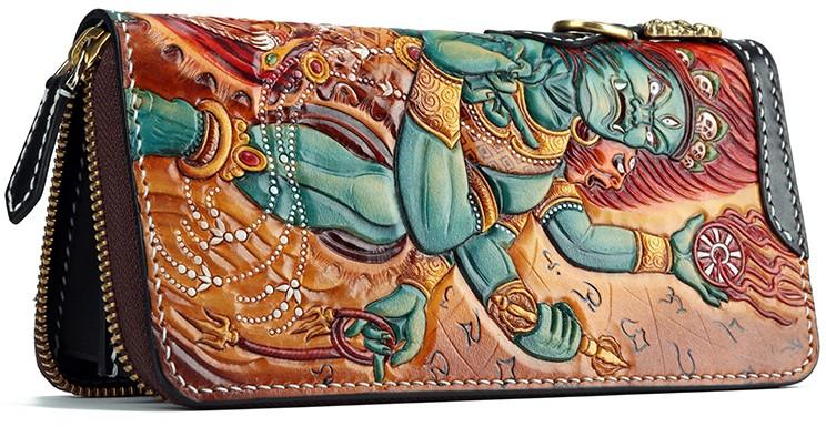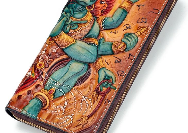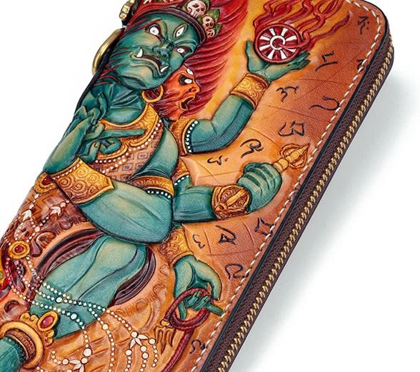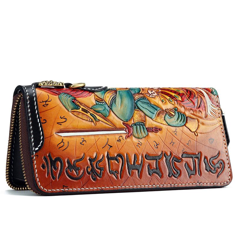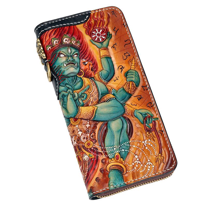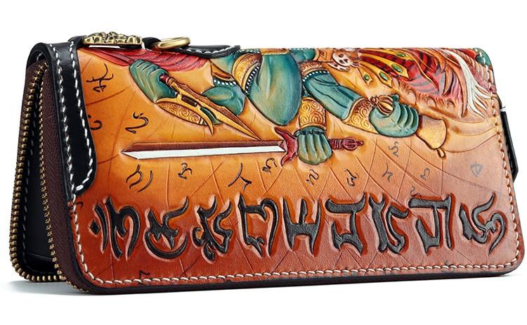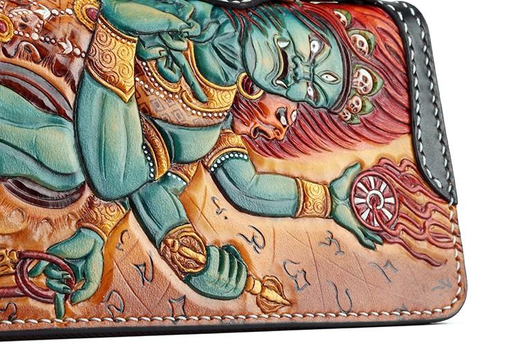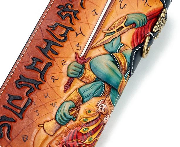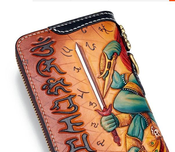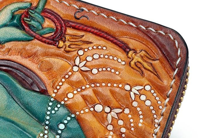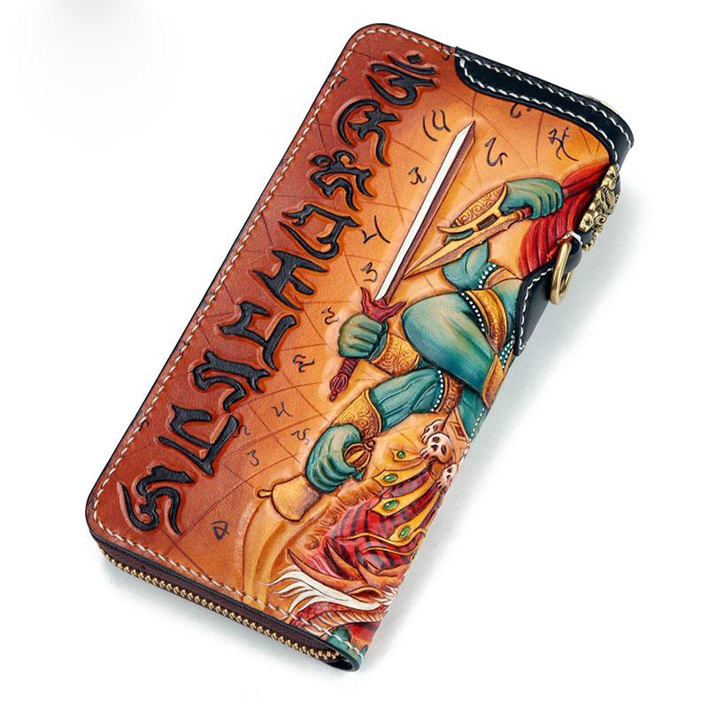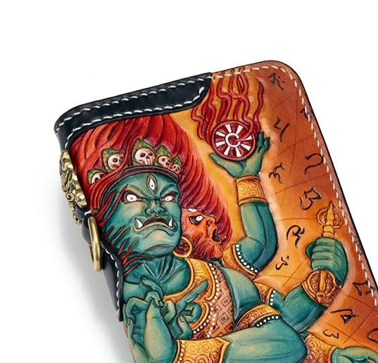 Design: Handmade Leather Tooled Ucchusma Mens Chain Biker Wallet Cool Leather Wallet Zipper Long Phone Wallets for Men