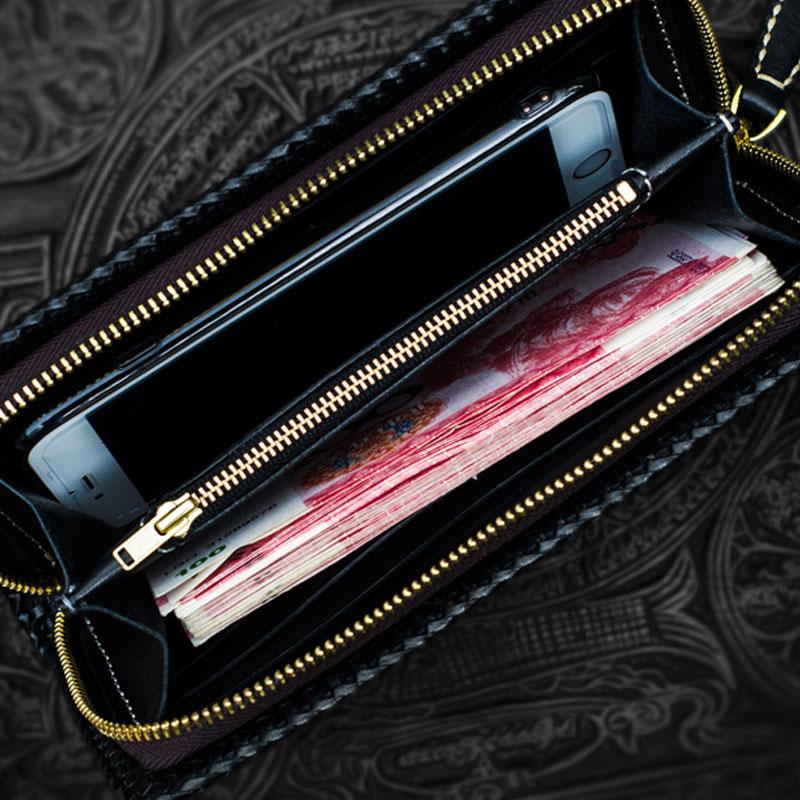 Slots: 2 full size bill slot, 8 card holders, 1 zipper slot