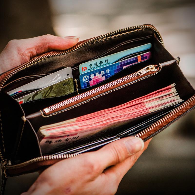 Slots: 2 full size bill slot, 8 card holders, 1 zipper slot