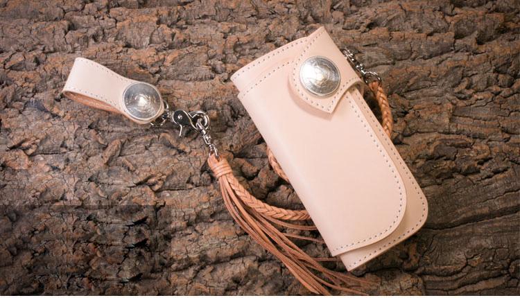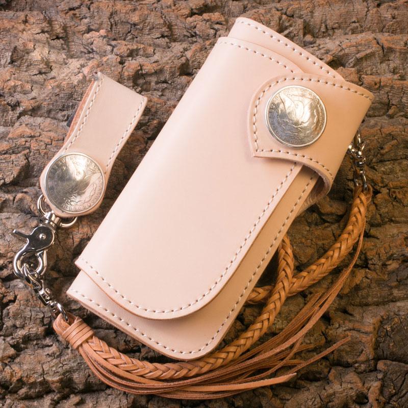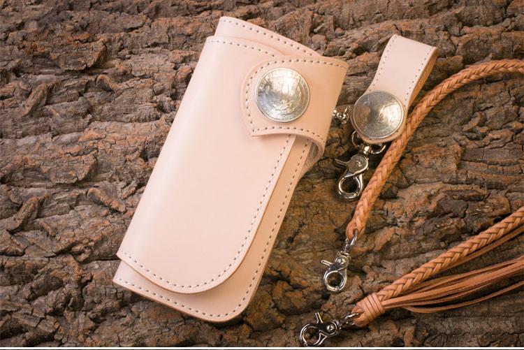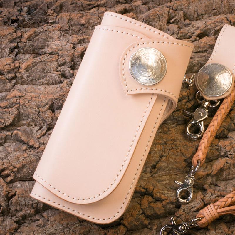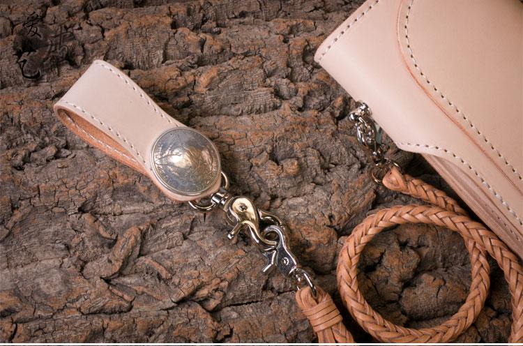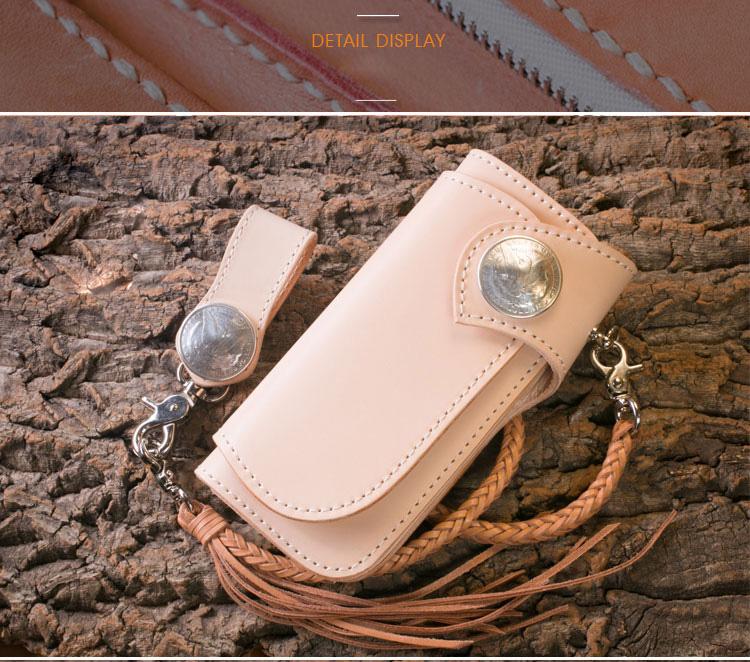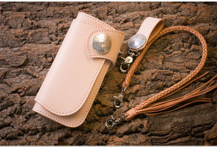 Style: Handmade Mens Cool Beige Leather Chain Wallet Biker Trucker Wallet with Chain