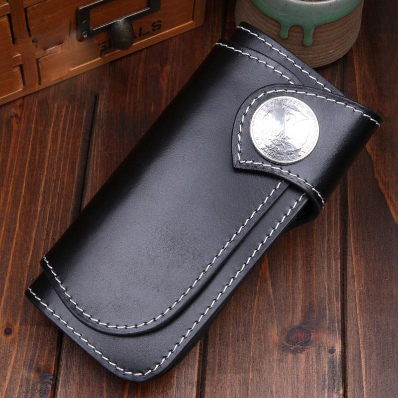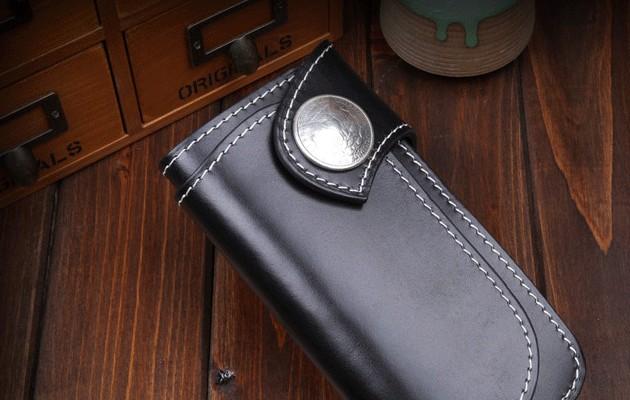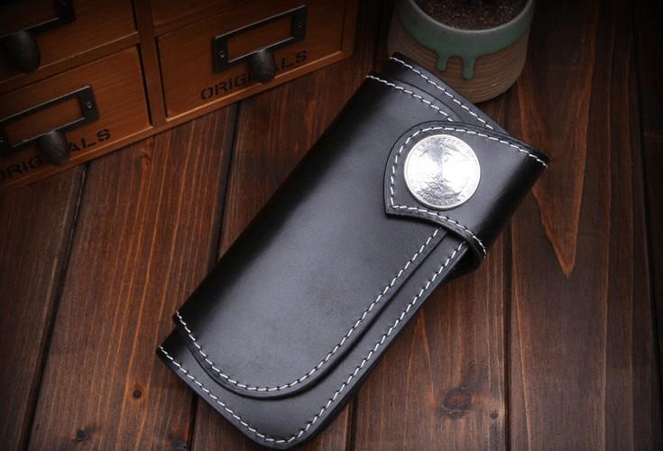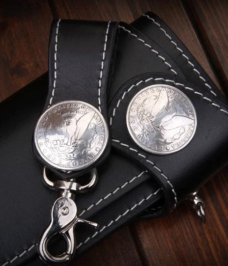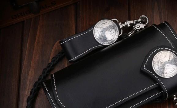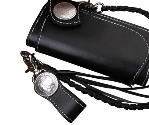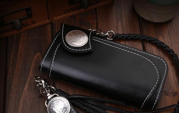 Style: Handmade Mens Cool Black Leather Chain Wallet Biker Trucker Wallet with Chain