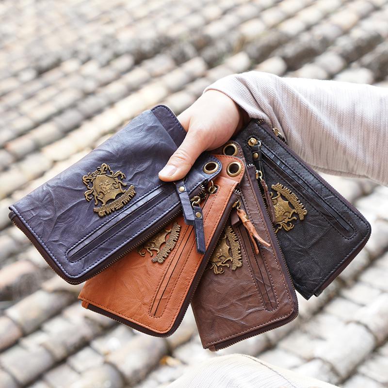 Style: Handmade Mens Cool Long Leather Chain Wallet Cards Biker Trucker Wristlet Wallet