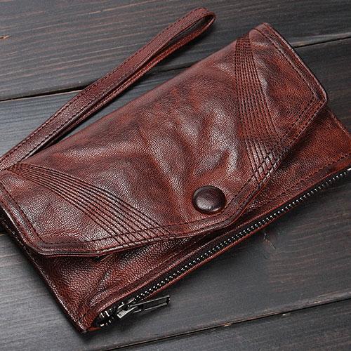 Design: Handmade Mens Cool Long Leather Chain Wallet Cards Biker Trucker Wristlet Wallet