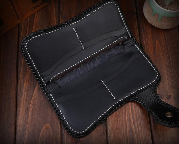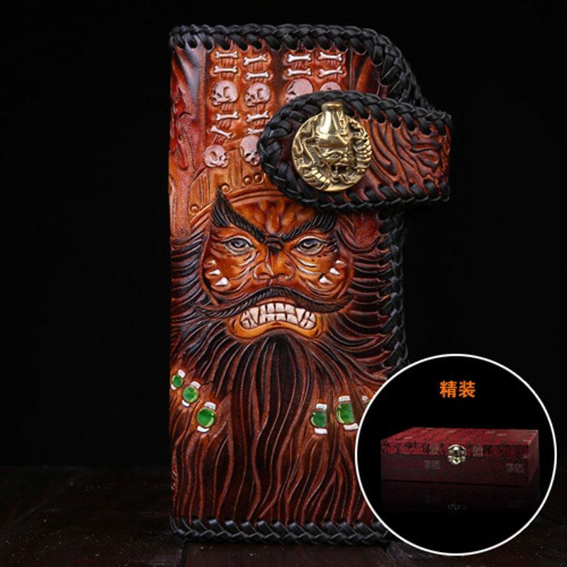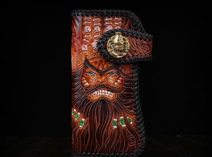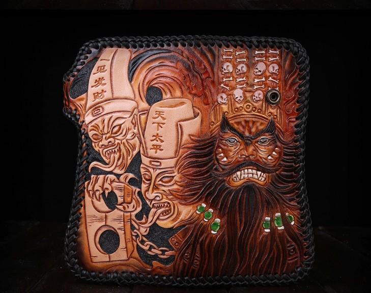 Design: Handmade Mens Cool Tooled Zhong Kui demon Leather Chain Wallet Biker Trucker Wallet with Chain