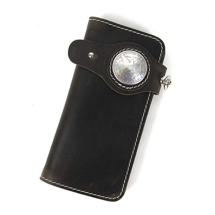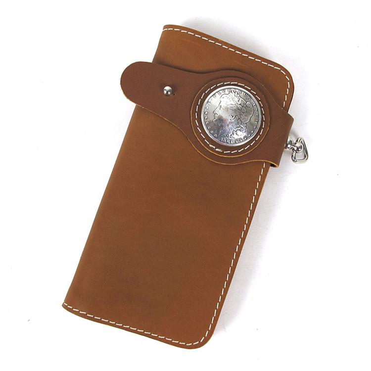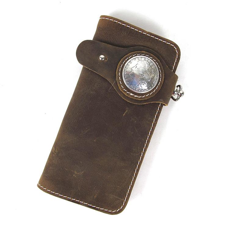 Style: Handmade Beige Long Biker Wallet with Chain Cool Mens Leather Biker Chain Wallet