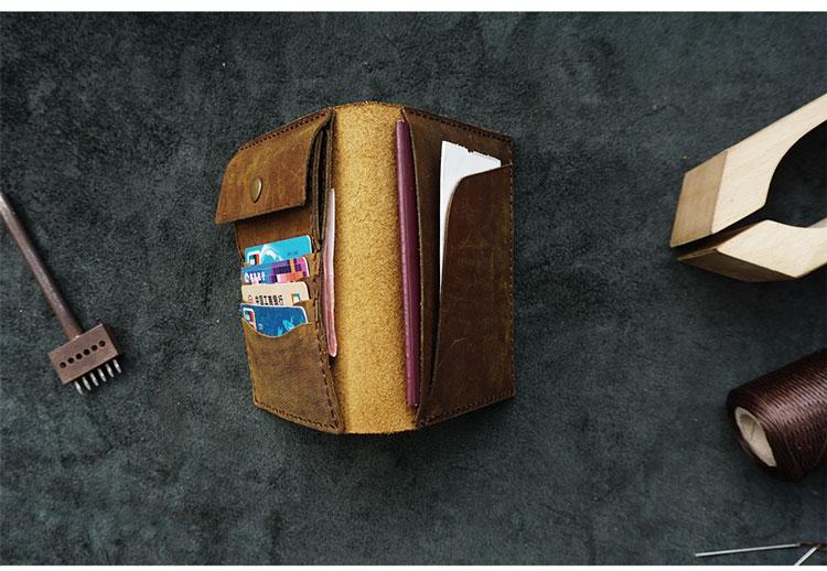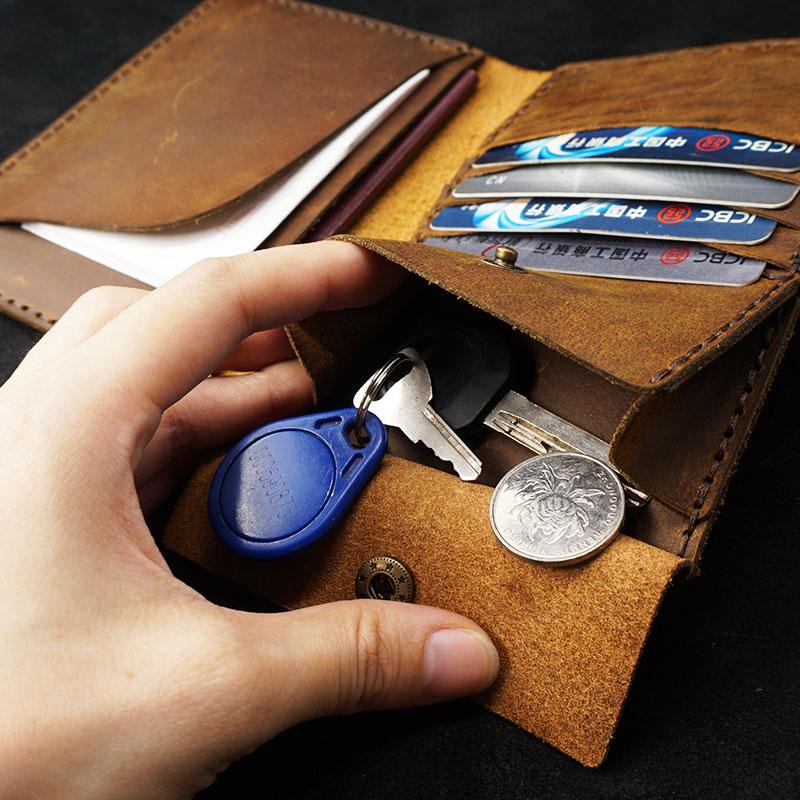 Handmade Slim Leather Mens Bifold Travel Wallets Passport Wallet Long Wallet for Men