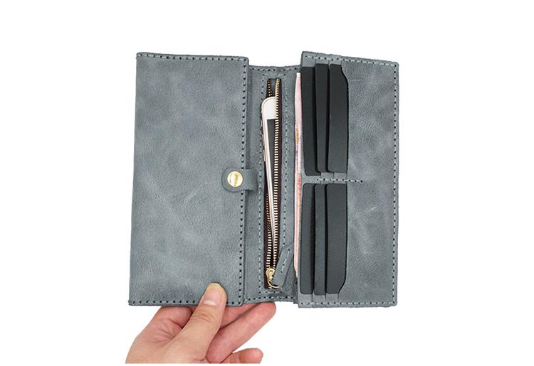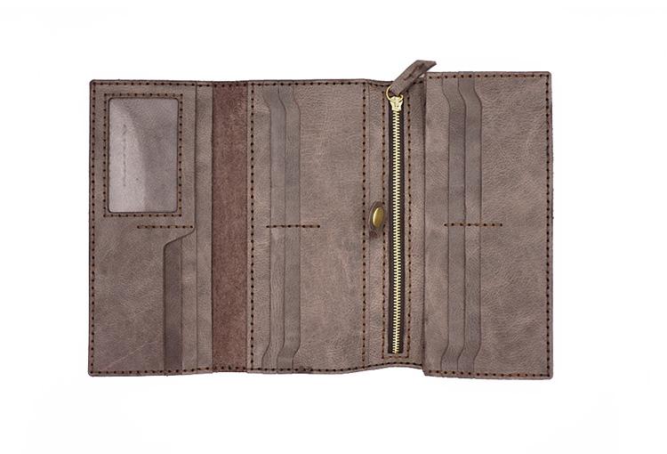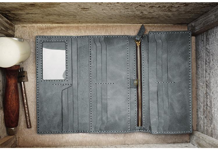 Design: Handmade Leather Mens Trifold long Wallet Lots Cards Checkbook Long Wallet for Men