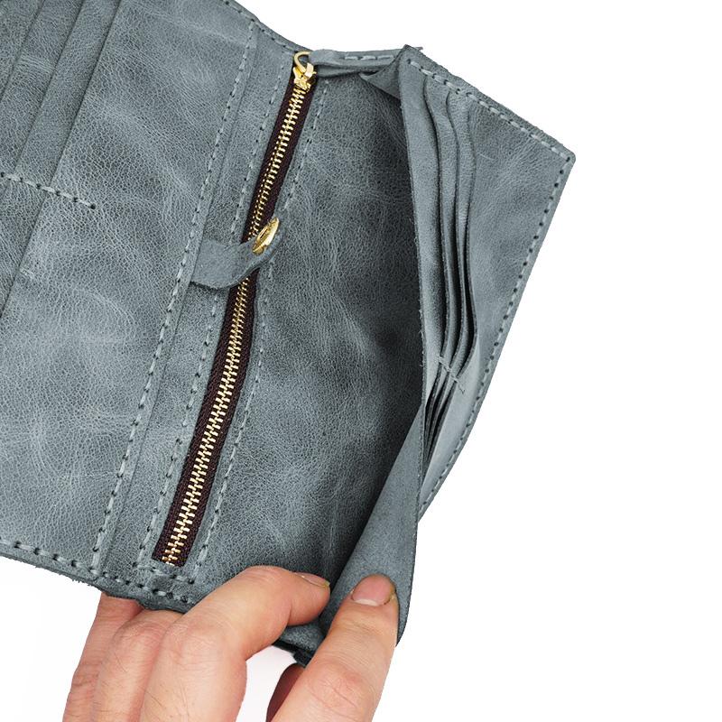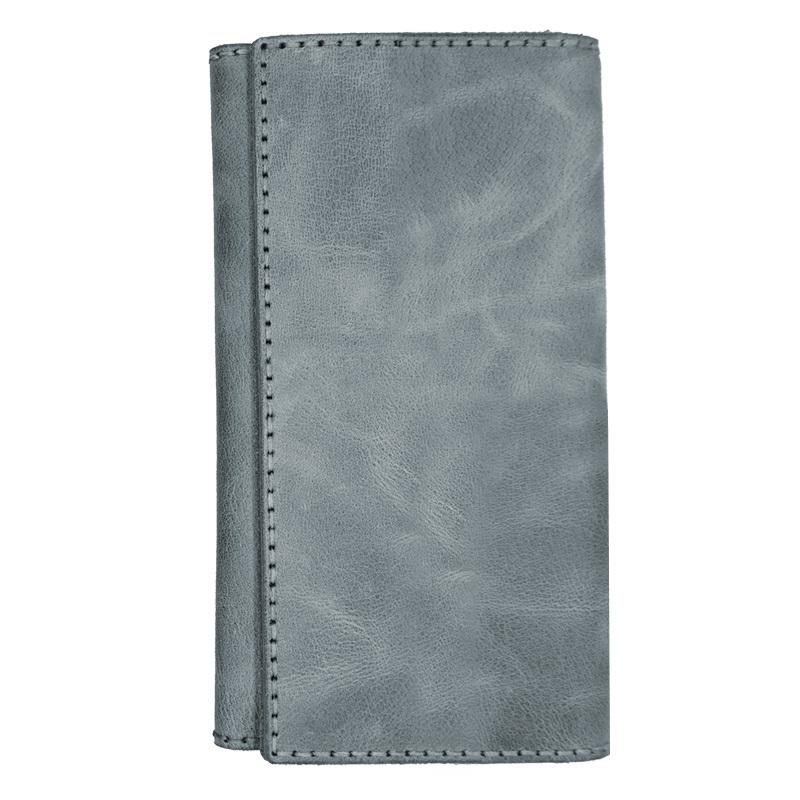 Leather Mens Trifold Long Wallet Handmade Lots Cards Checkbook Long Wallet for Men