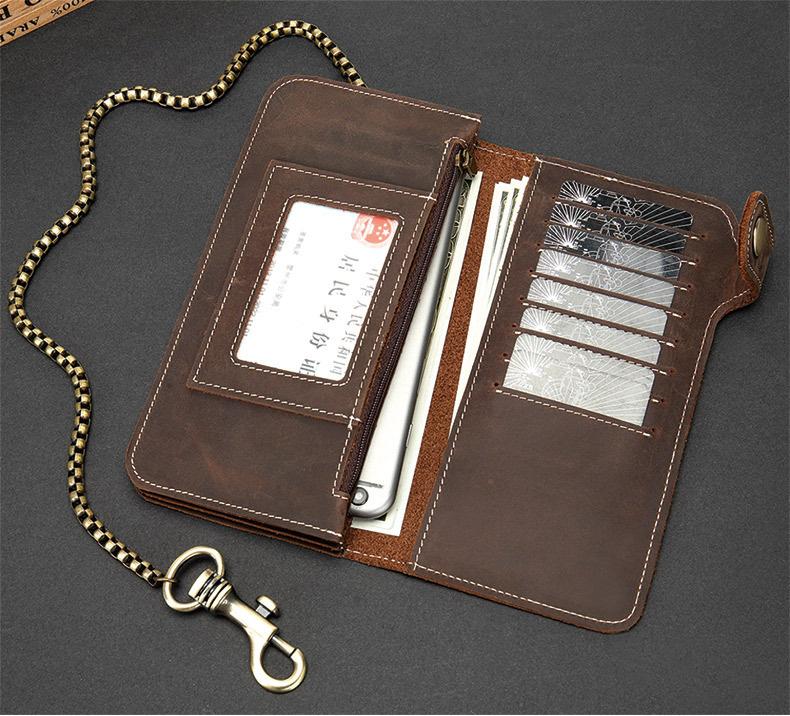 Cool Mens Leather Biker Chain Wallet Chain Wallet Long Biker Wallet for Men