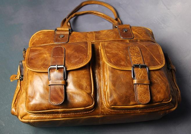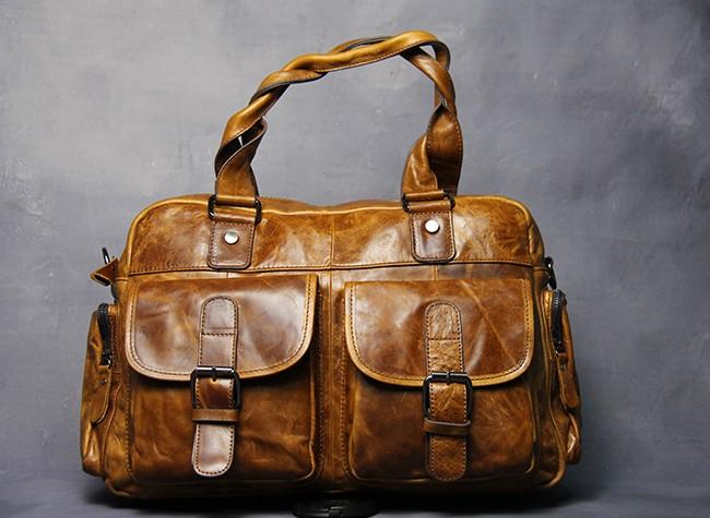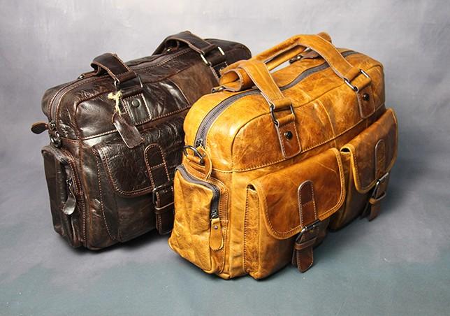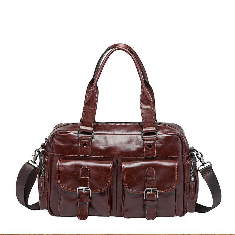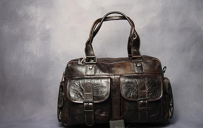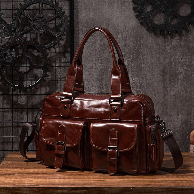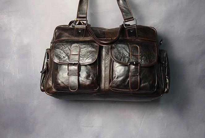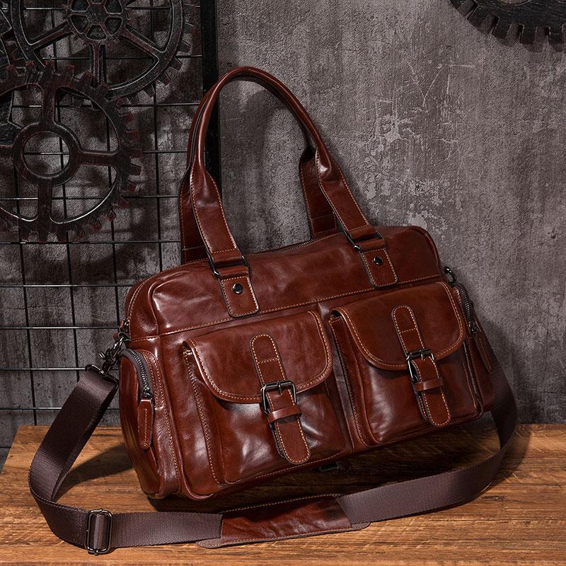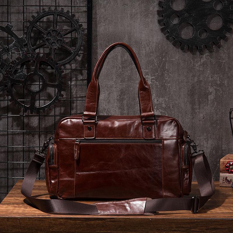 Cool Leather Mens Travel Bag Overnight Bag Work Handbags Business Bag for Men