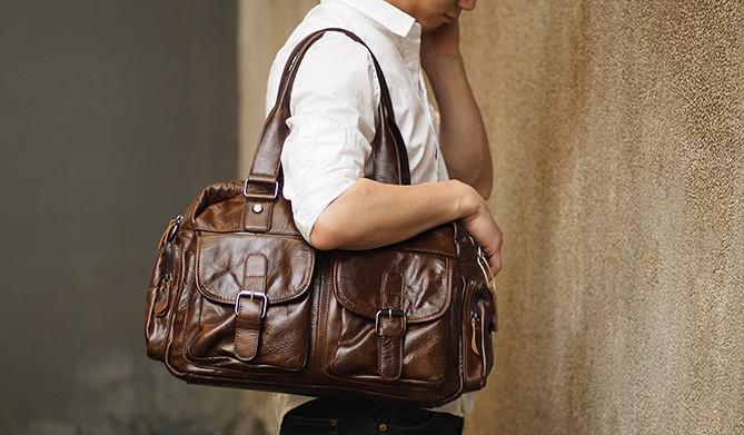 Design: Cool Leather Mens Travel Bag Overnight Bag Work Handbag Business Bag for Men