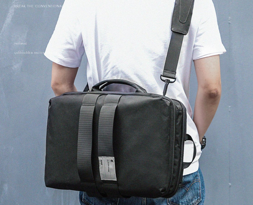 Design: Cool PVC Canvas Men's Blue Messenger Bag Travel Backpack 15.5'' Black Handbag For Men