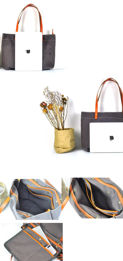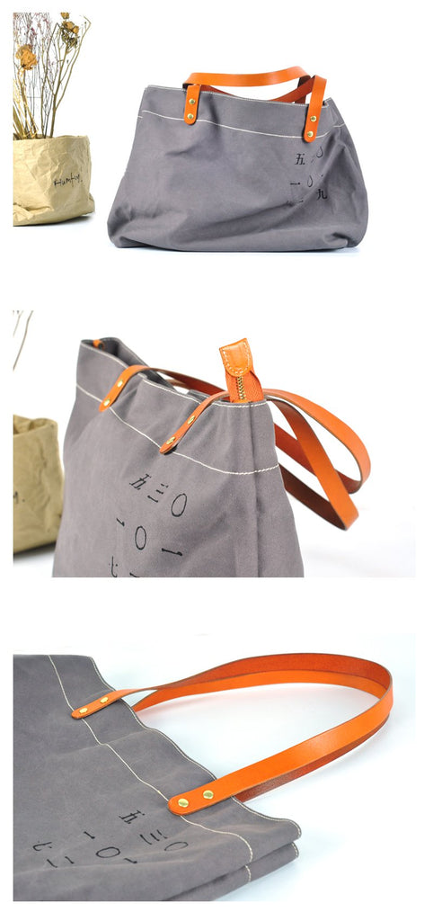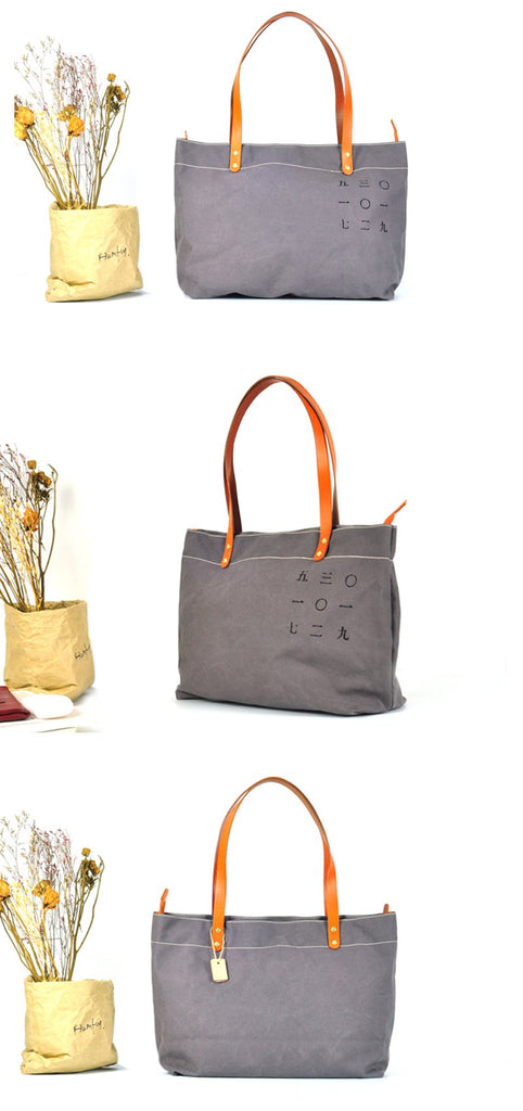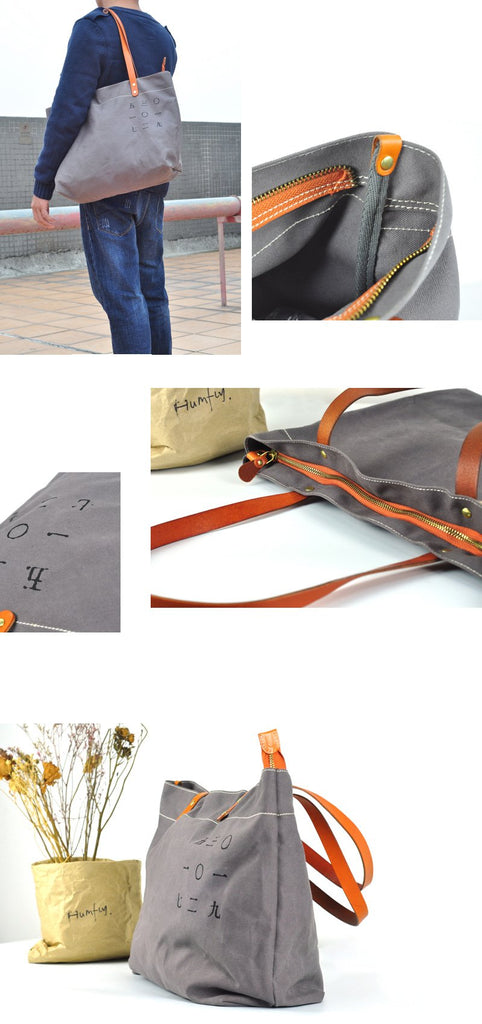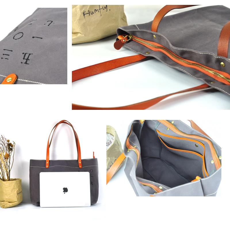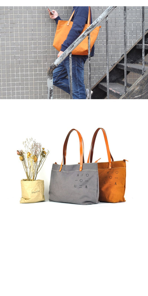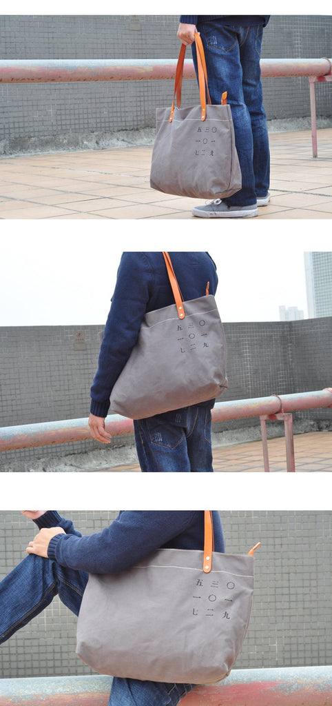 Design: Gray Canvas Mens Denim Bag Tote Shopping Bag Messenger Bag Light Brown Hand Bag For Men and Women