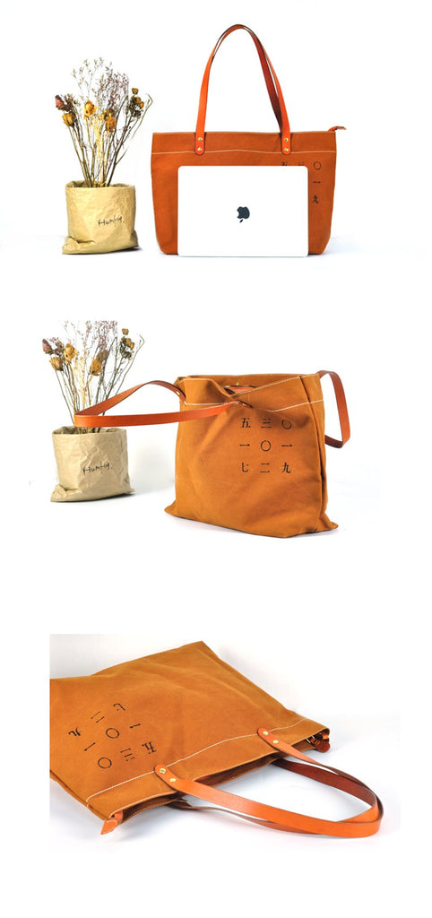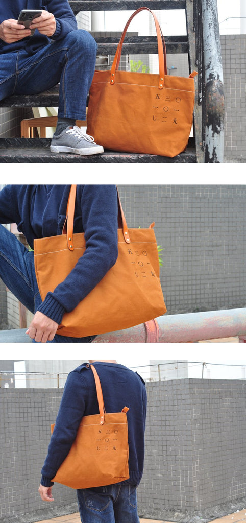 Vintage Canvas Leather Mens Womens Tote Shopping Bags Messenger Bag Tan Tote Handbag For Men Women