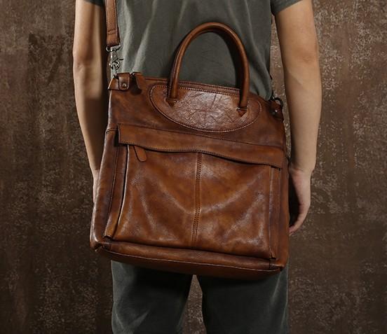 Design: Handmade Leather Mens Cool Messenger Bag Briefcase Work Bag Business Bag Laptop Bag for men