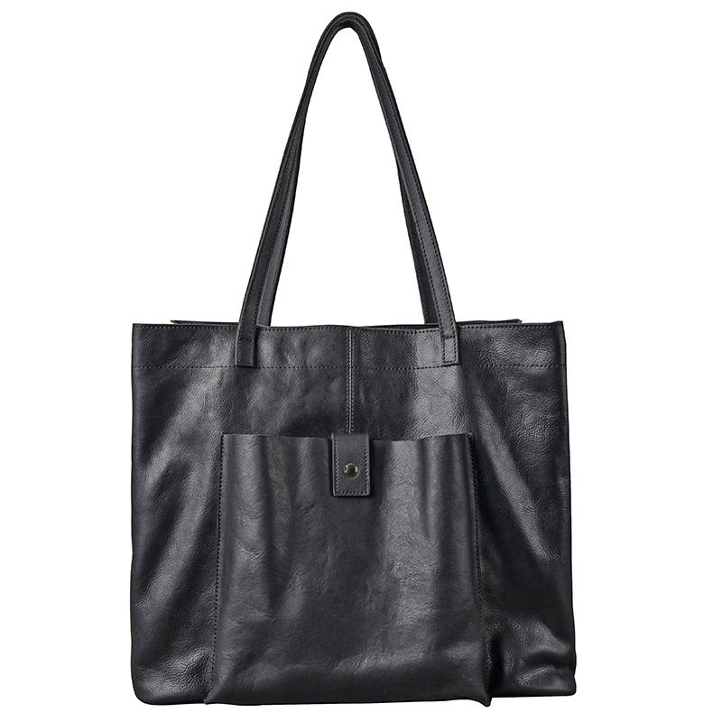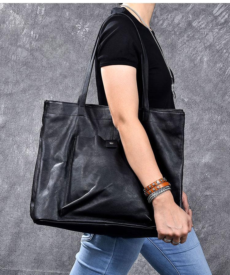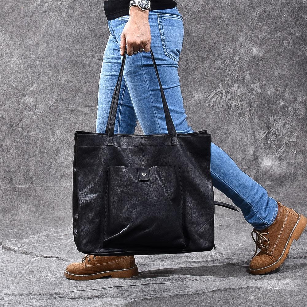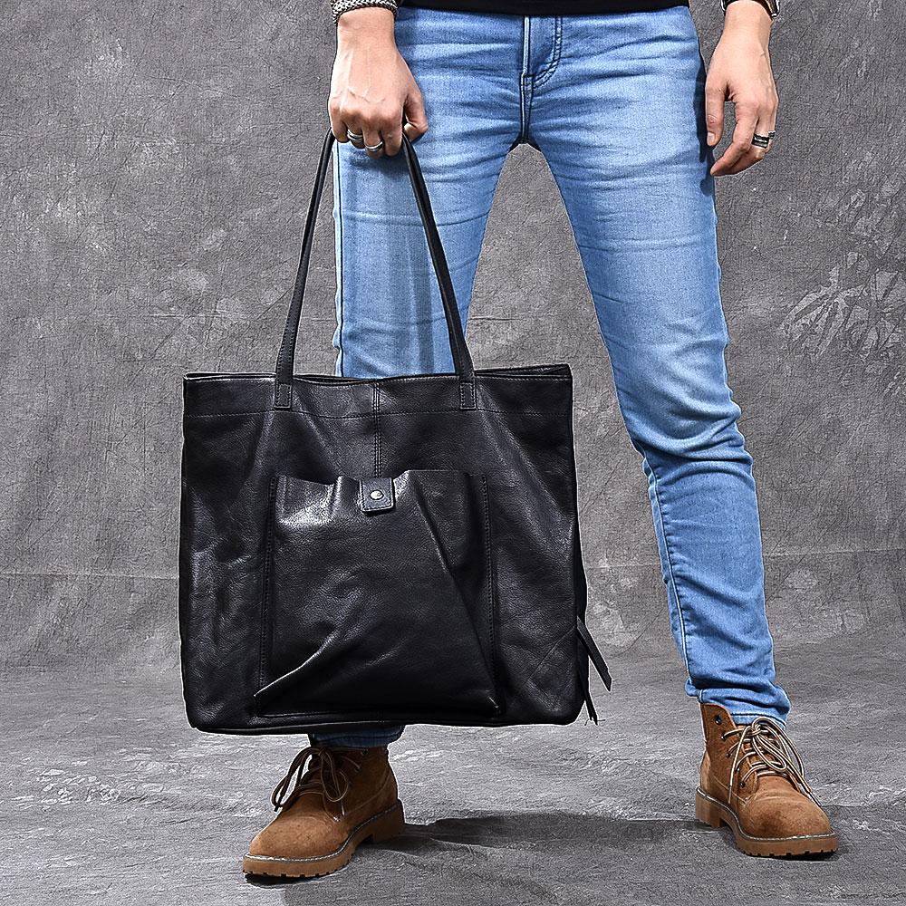 Style: Leather Mens Womens 15" Large Shoulder Bag Black Tote Bag Large Side Bag Handbag For Men