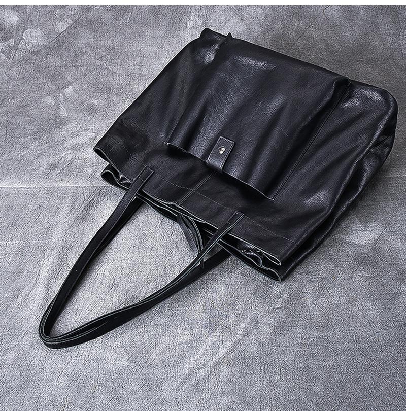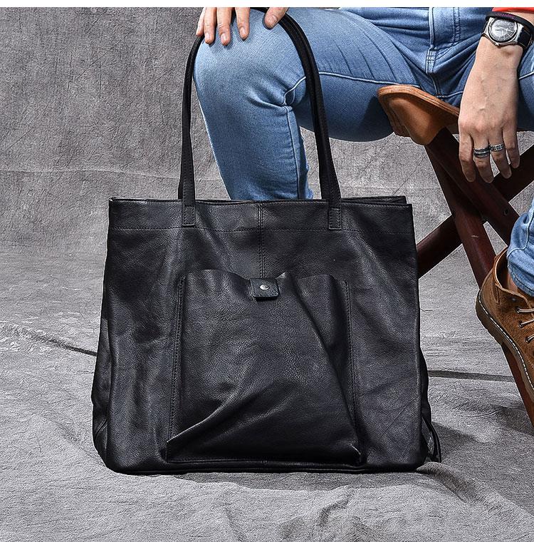 Design: Leather Mens Womens 15" Large Shoulder Bag Black Tote Bag Large Side Bag Handbag For Men