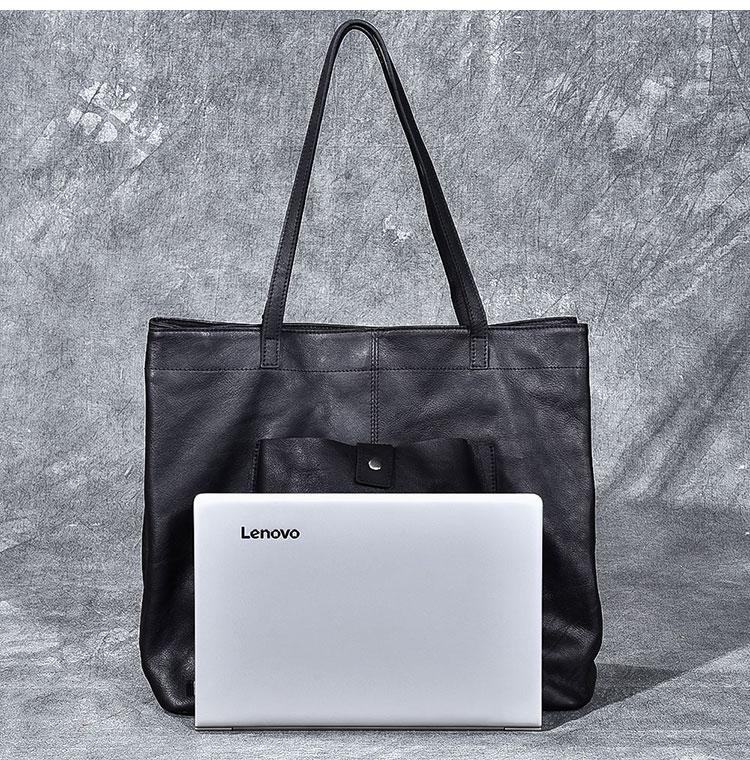 Leather Mens Womens 15" Large Shoulder Bag Black Tote Bag Large Side Bag Handbag For Men