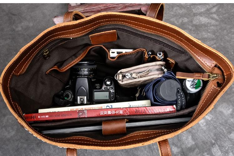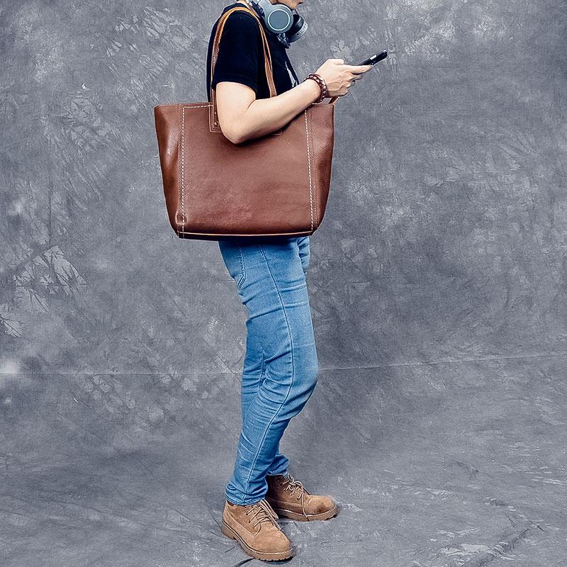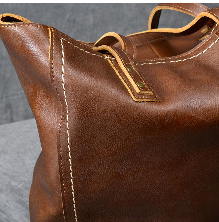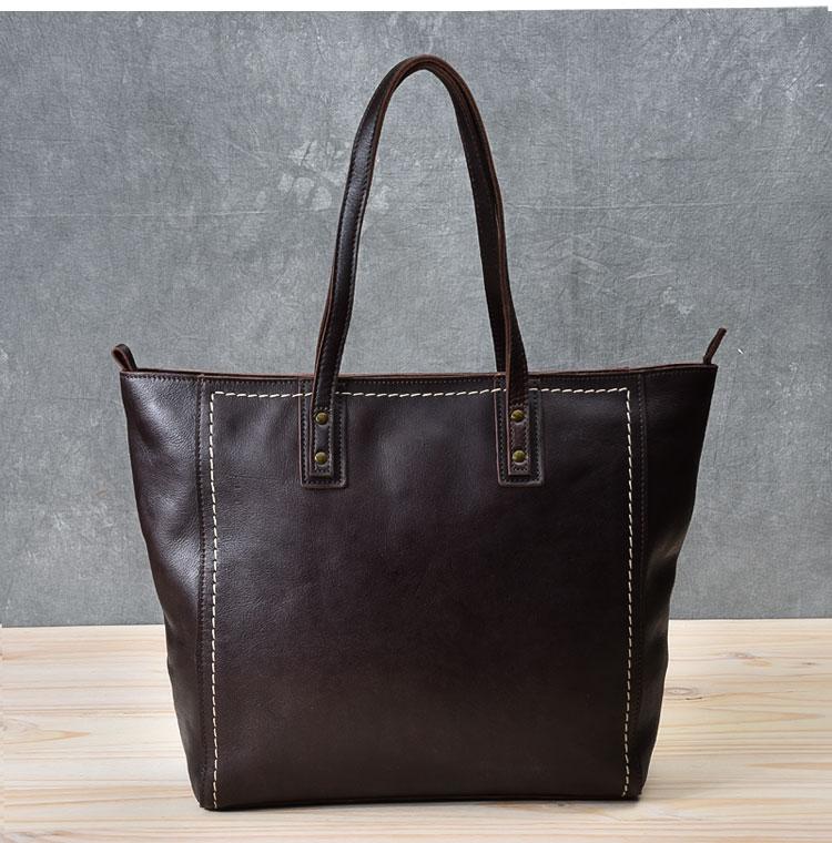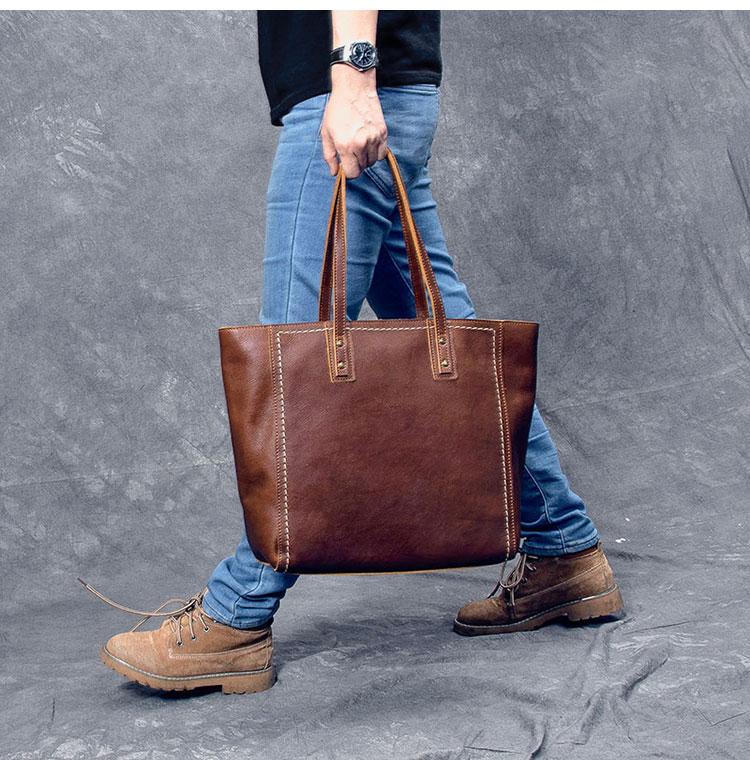 Style: Leather Mens Womens 15" Large Shoulder Bag Brown Tote Bag Large Side Bag Dark Coffee Handbag For Men