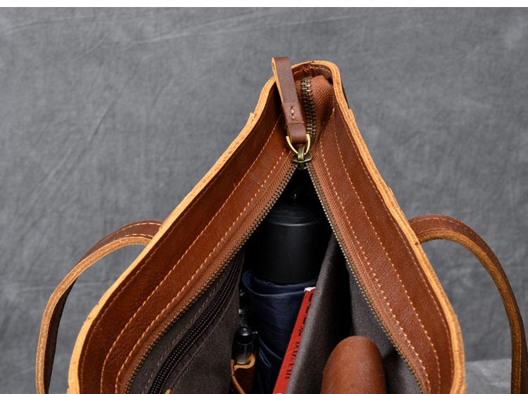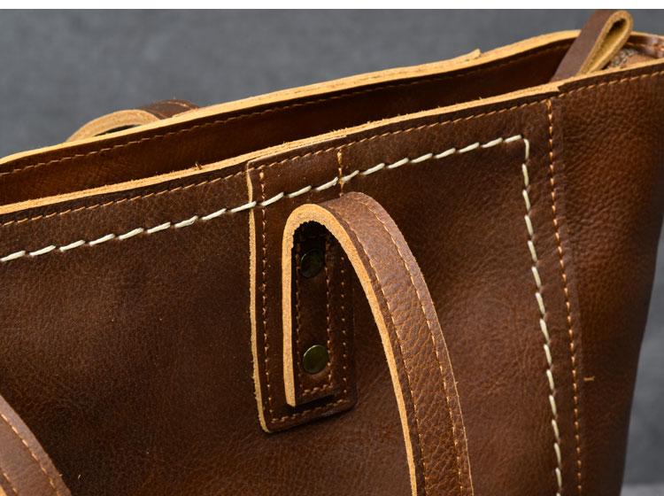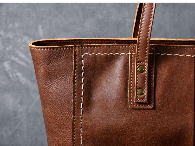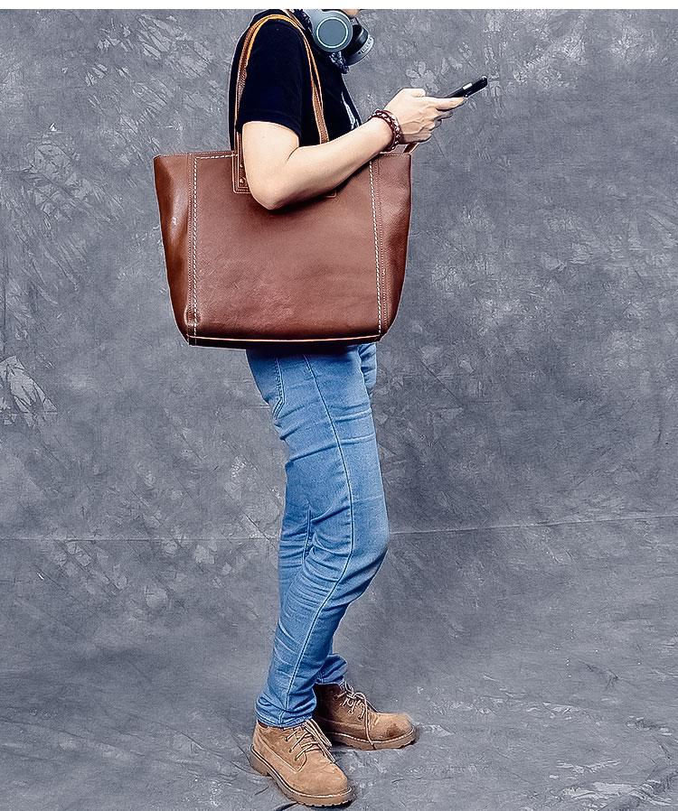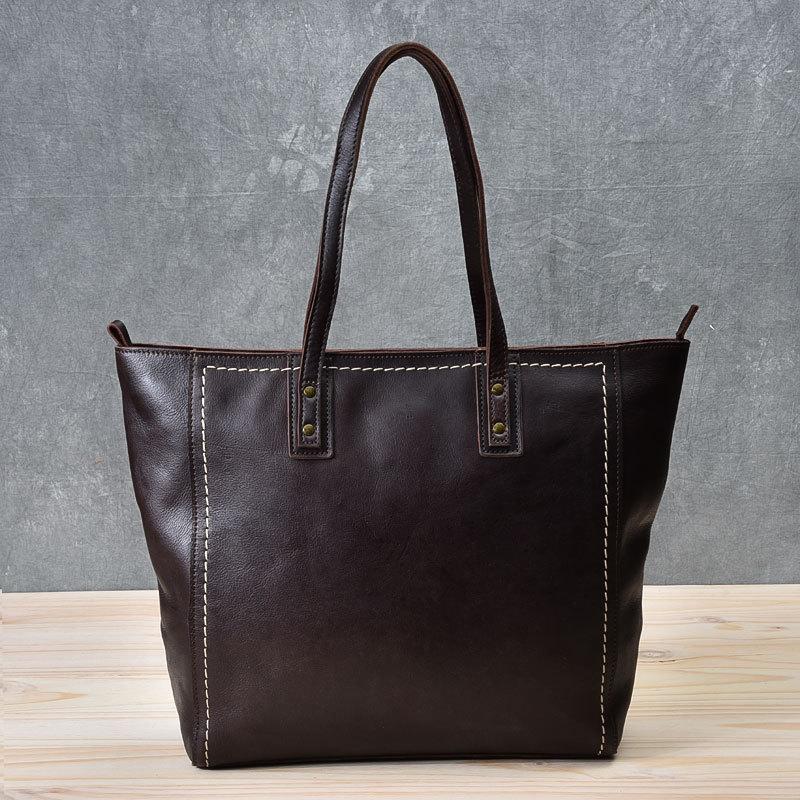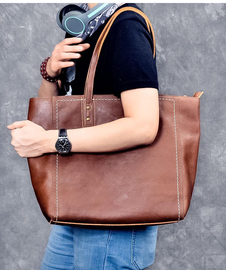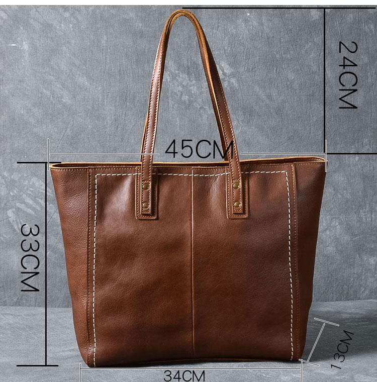 Design: Leather Mens Womens 15" Large Shoulder Bag Brown Tote Bag Large Side Bag Dark Coffee Handbag For Men
