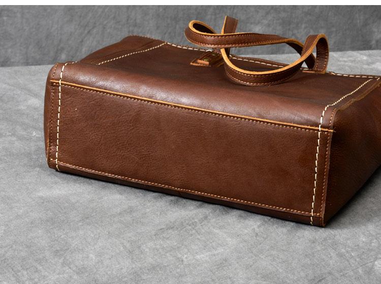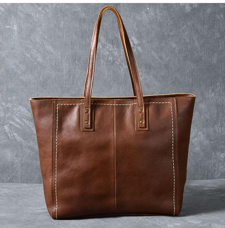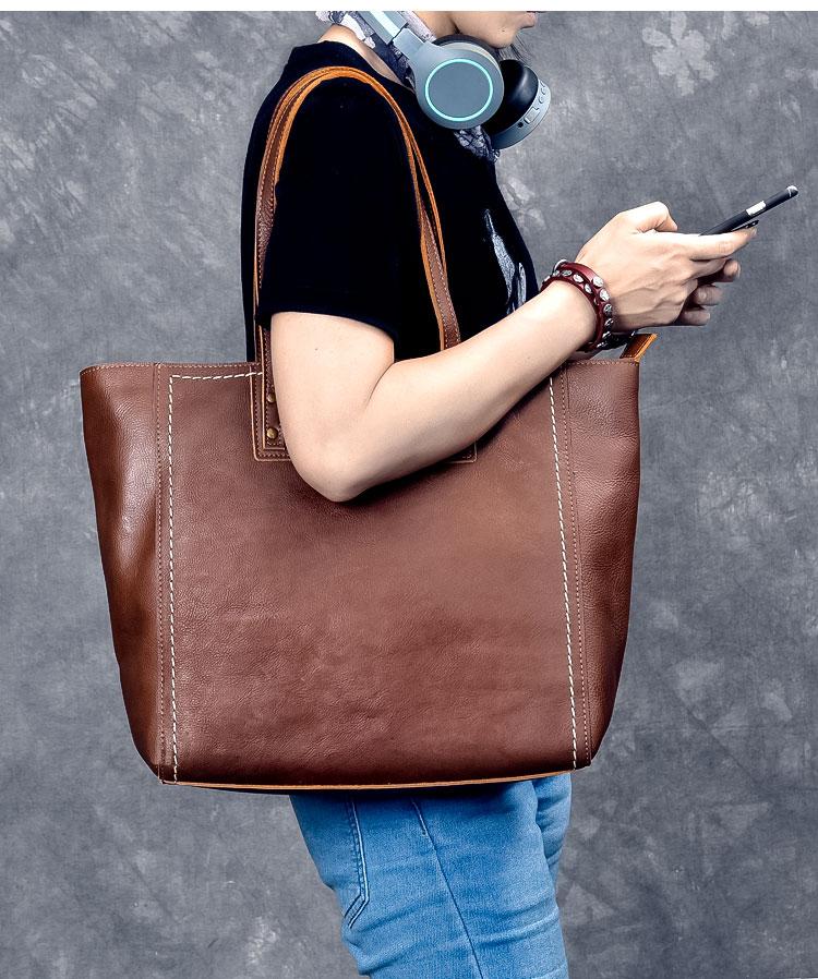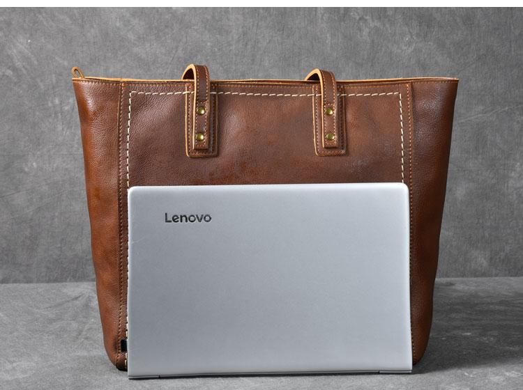 Leather Mens Womens 15" Large Shoulder Bag Brown Tote Bag Large Side Bag Dark Coffee Handbag For Men