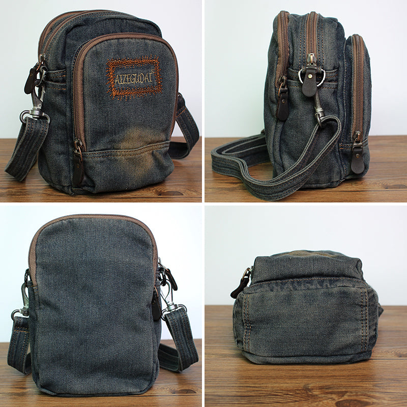 Design: Blue Denim Mens Small Vertical Messenger Bag Denim Side Bag Small Crossbody Bag For Women