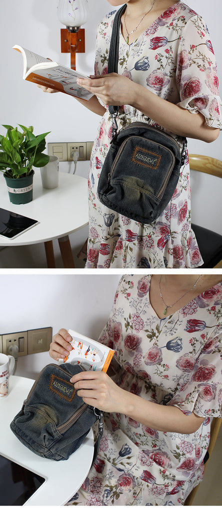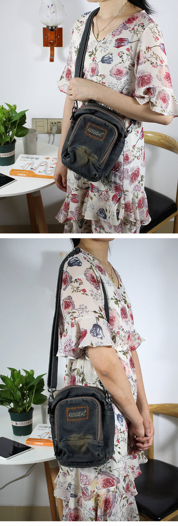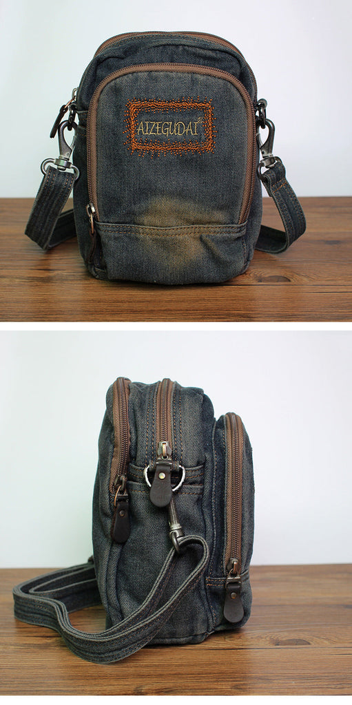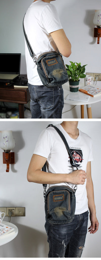 Style: Blue Denim Mens Small Vertical Messenger Bag Denim Side Bag Small Crossbody Bag For Women