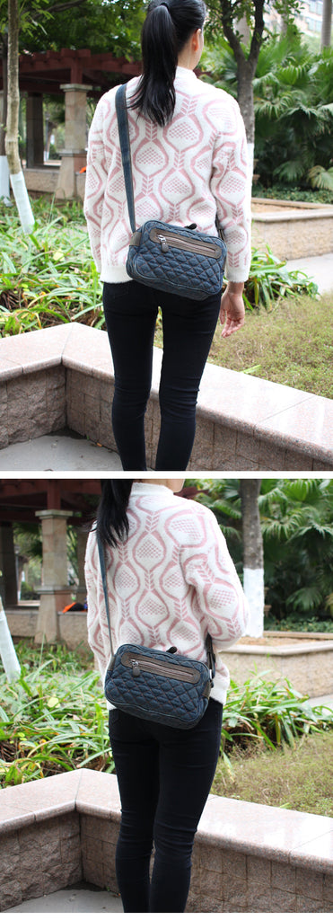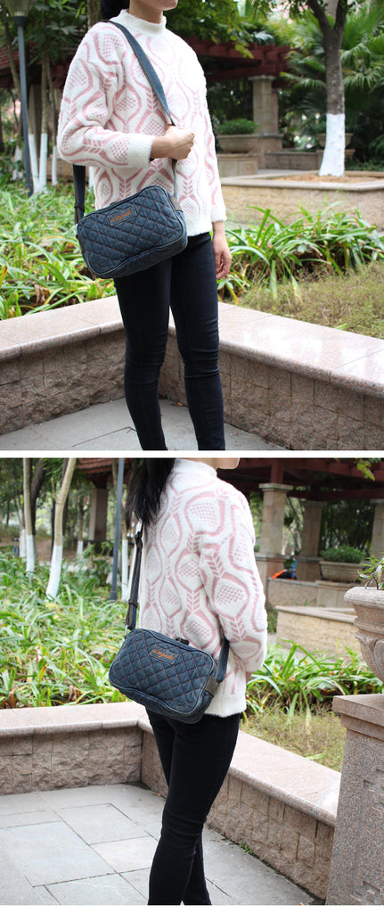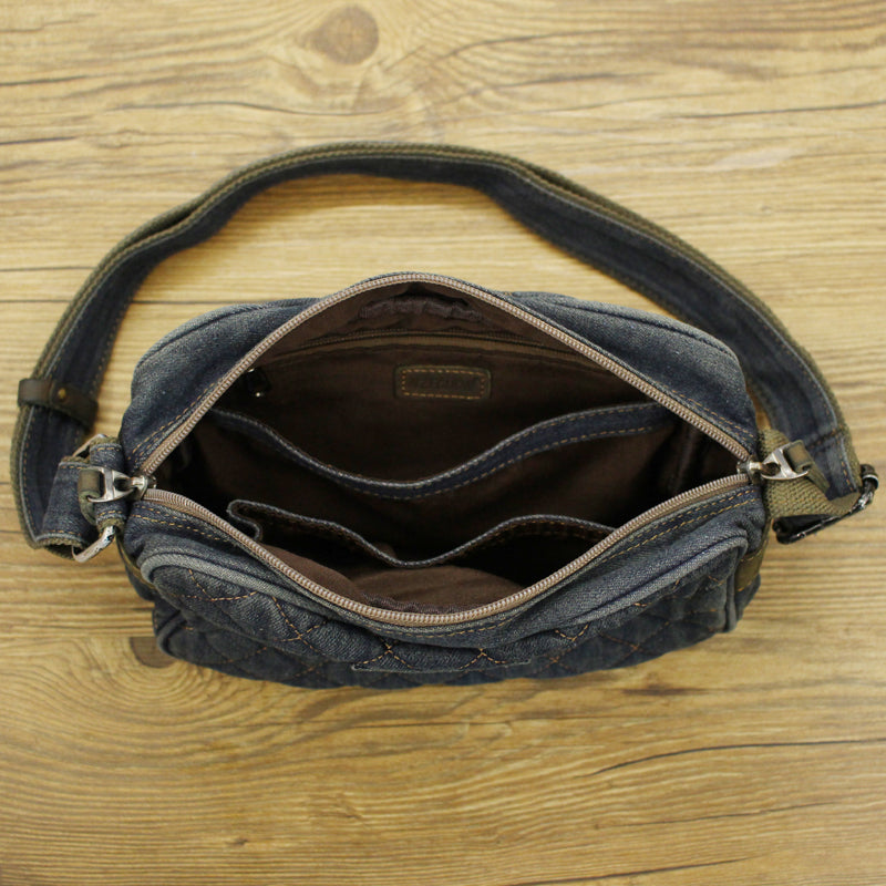 Blue Denim Womens Small Quilted Shoulder Bags Denim Quilted Messenger Bag Quilted Crossbody Bag For Men