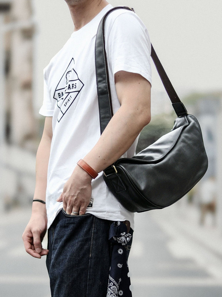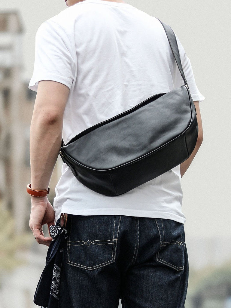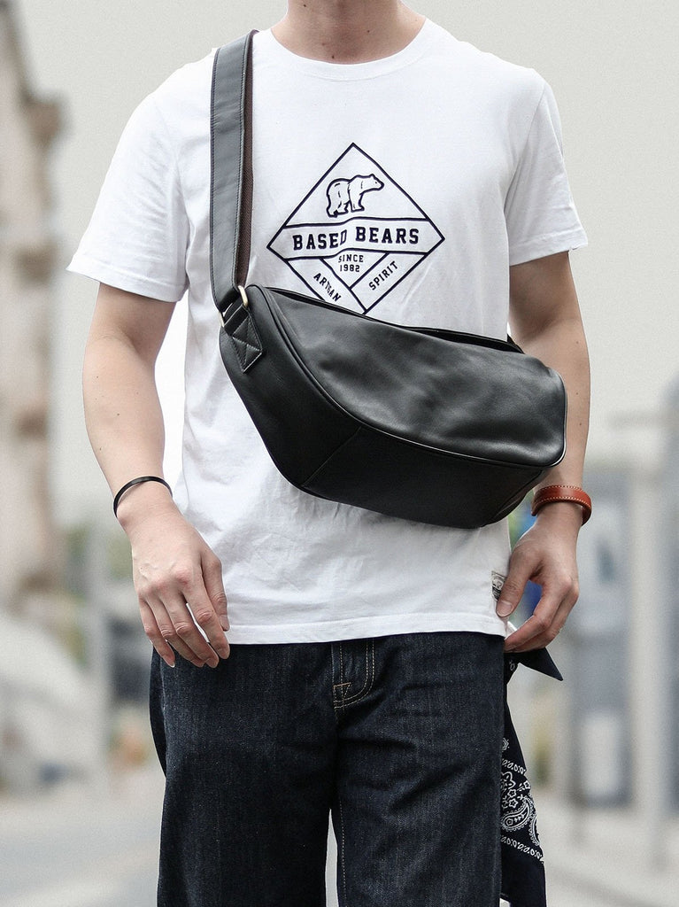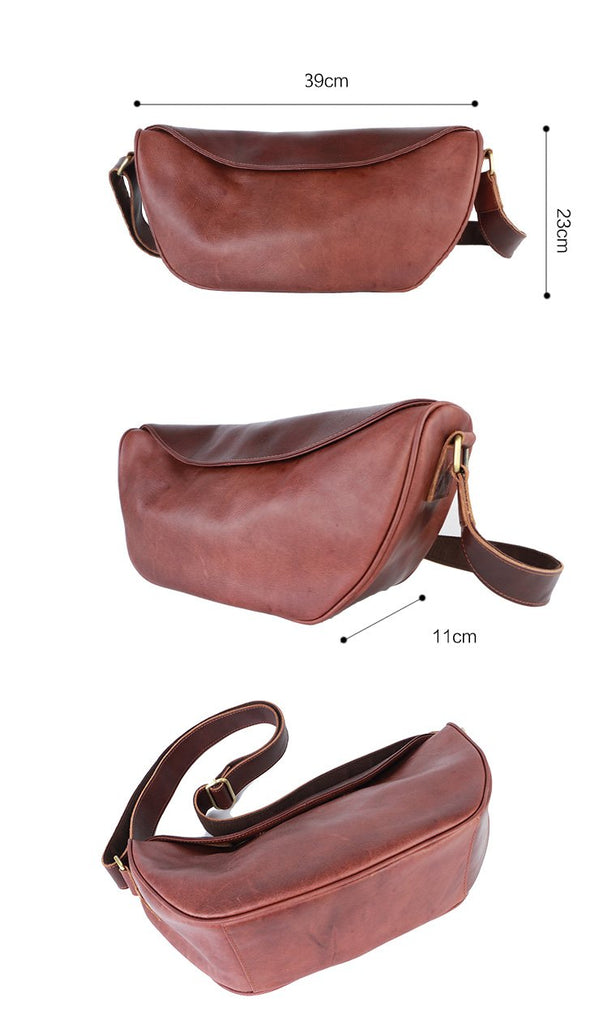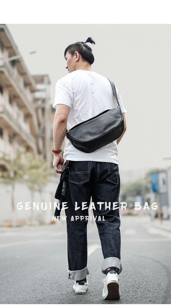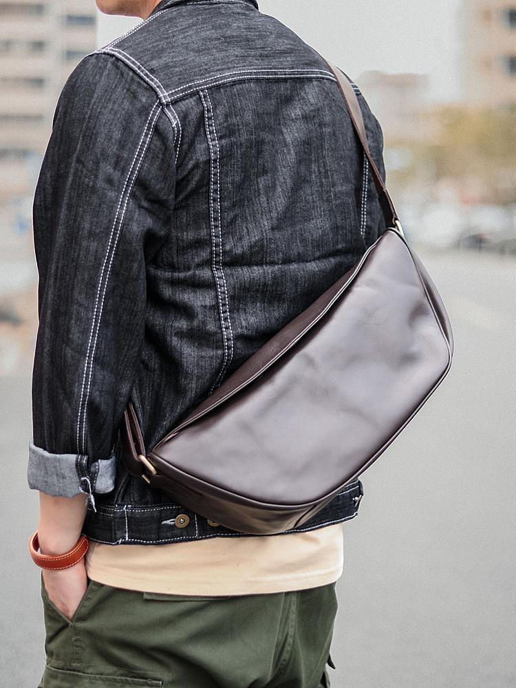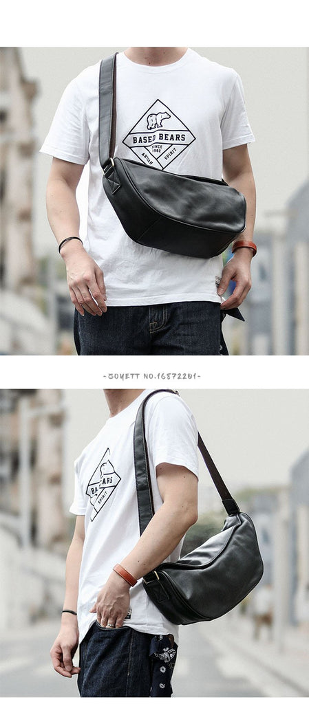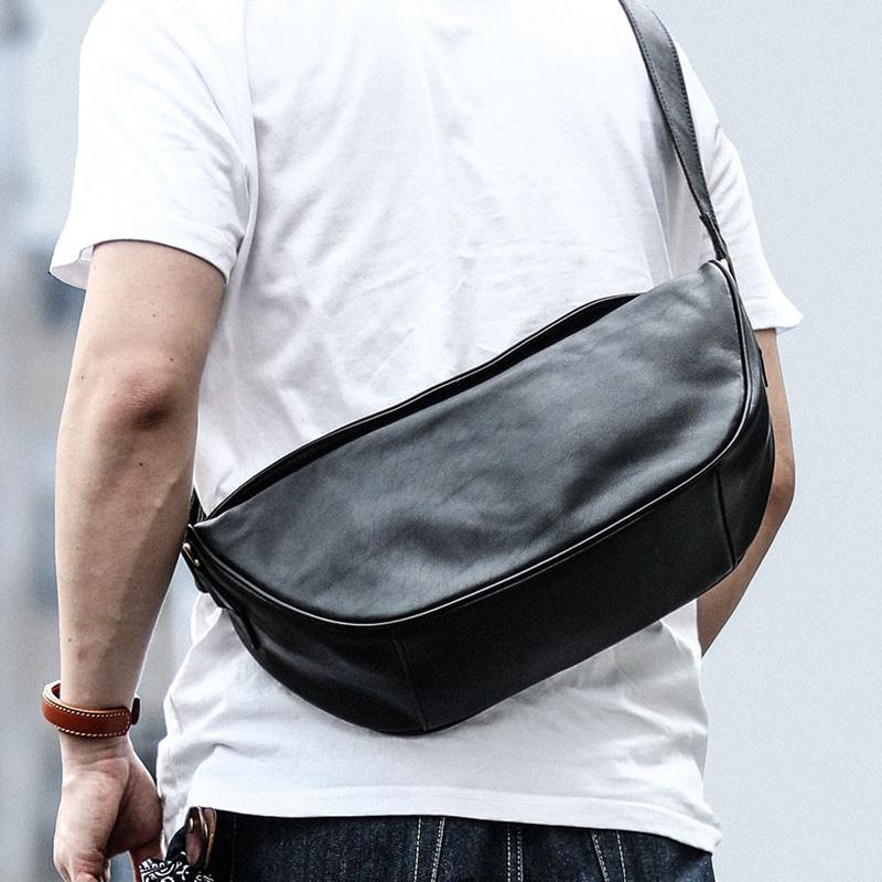 Design: Brown Cool Leather Mens Shoulder Bag Chest Bag Black Sling Pack For Men